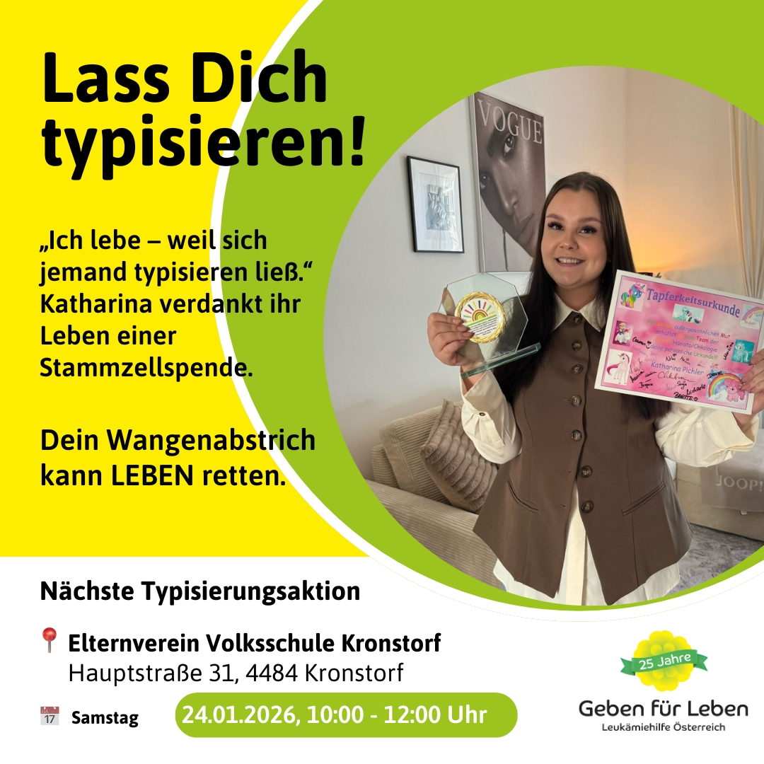Erfahren Sie aus erster Hand alle Neuigkeiten über Stammzellspenden in Österreich, Typisierungsaktionen, Aktuell Betroffene, Erfolge u.v.m..