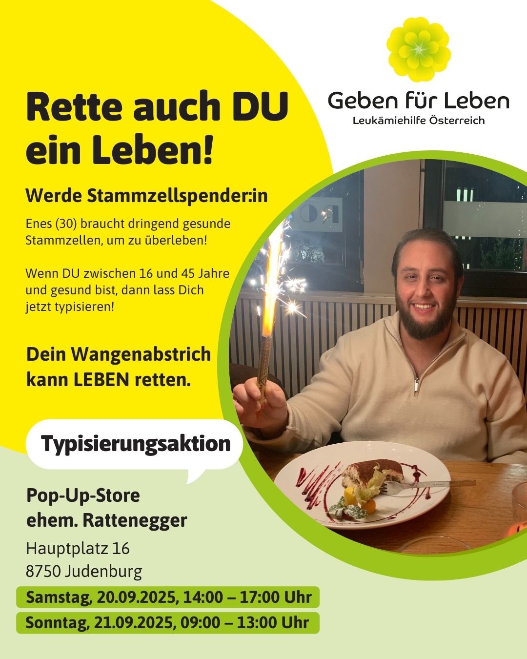 Samstag, 20. September 2025 von 14:00 bis 17:00 Uhr und Sonntag, 21. September 2025 von 09:00 bis 13:00 Uhr im Pop-Up-Store (ehem. Rattenegger Judenburg)