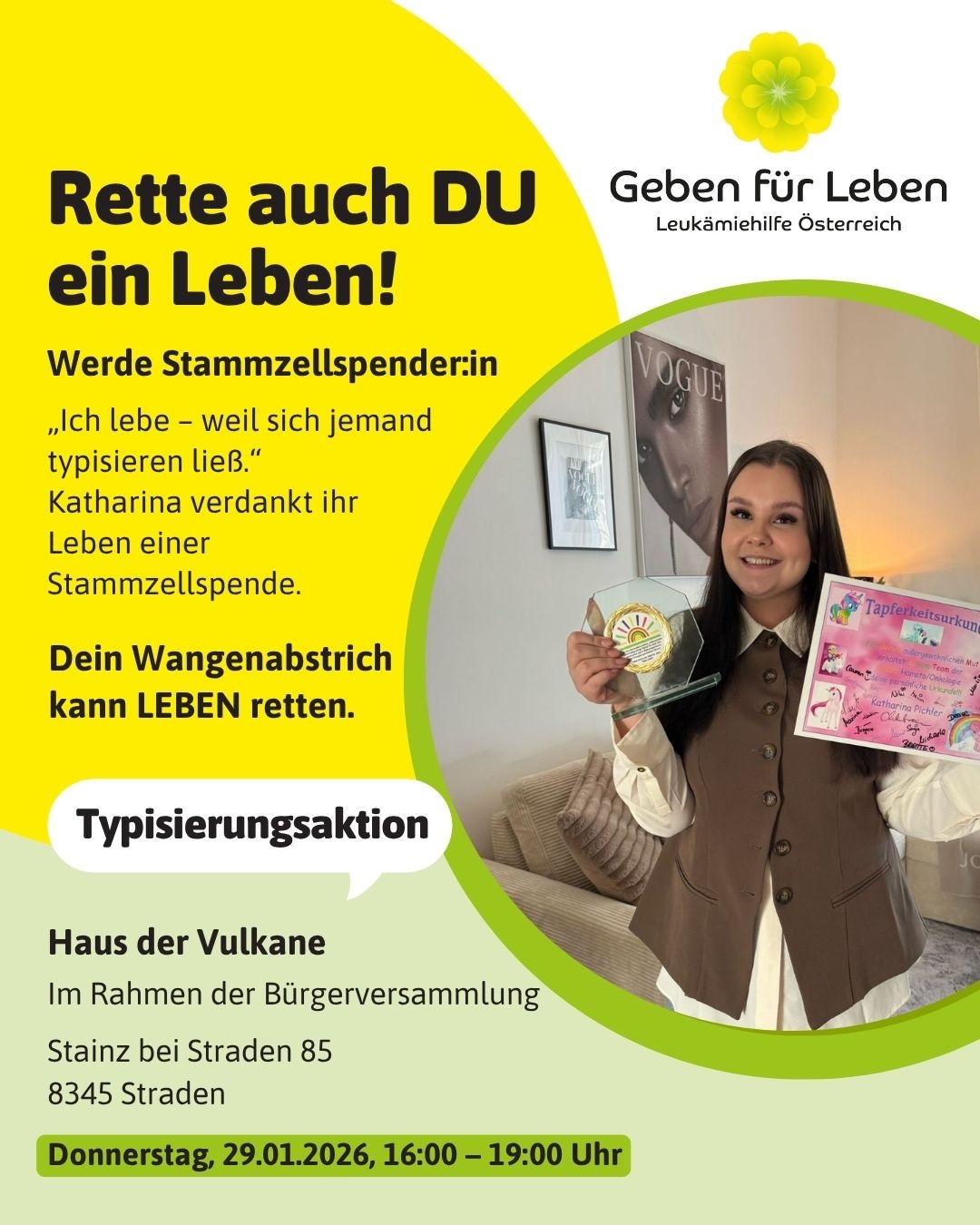 Donnerstag, 29. Januar 2026 von 16:00 bis 19:00 im Haus der Vulkane in Straden - Download Plakat