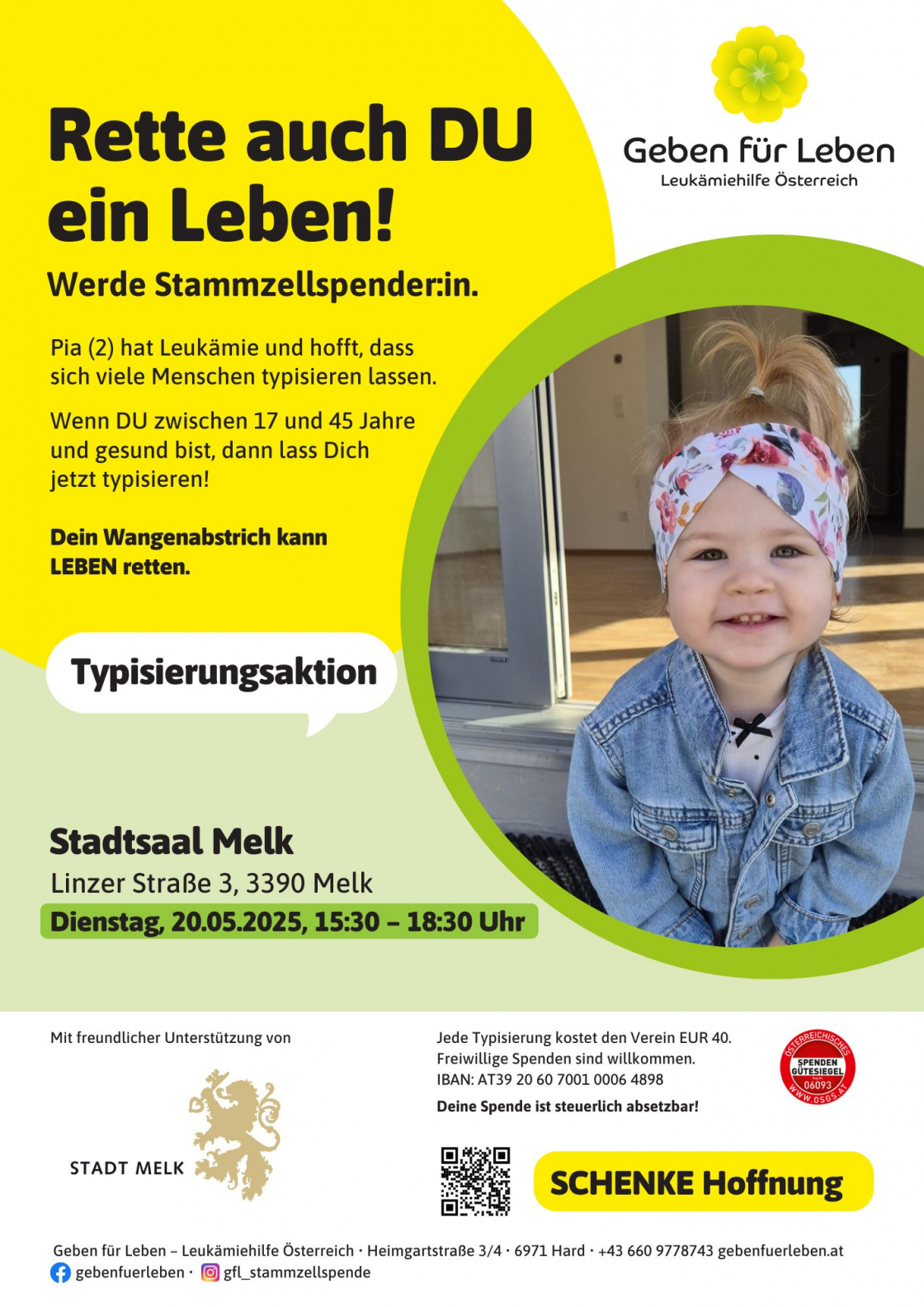Dienstag, 20. Mai 2025 von 15:30 bis 18.30 Uhr im Stadtsaal Melk