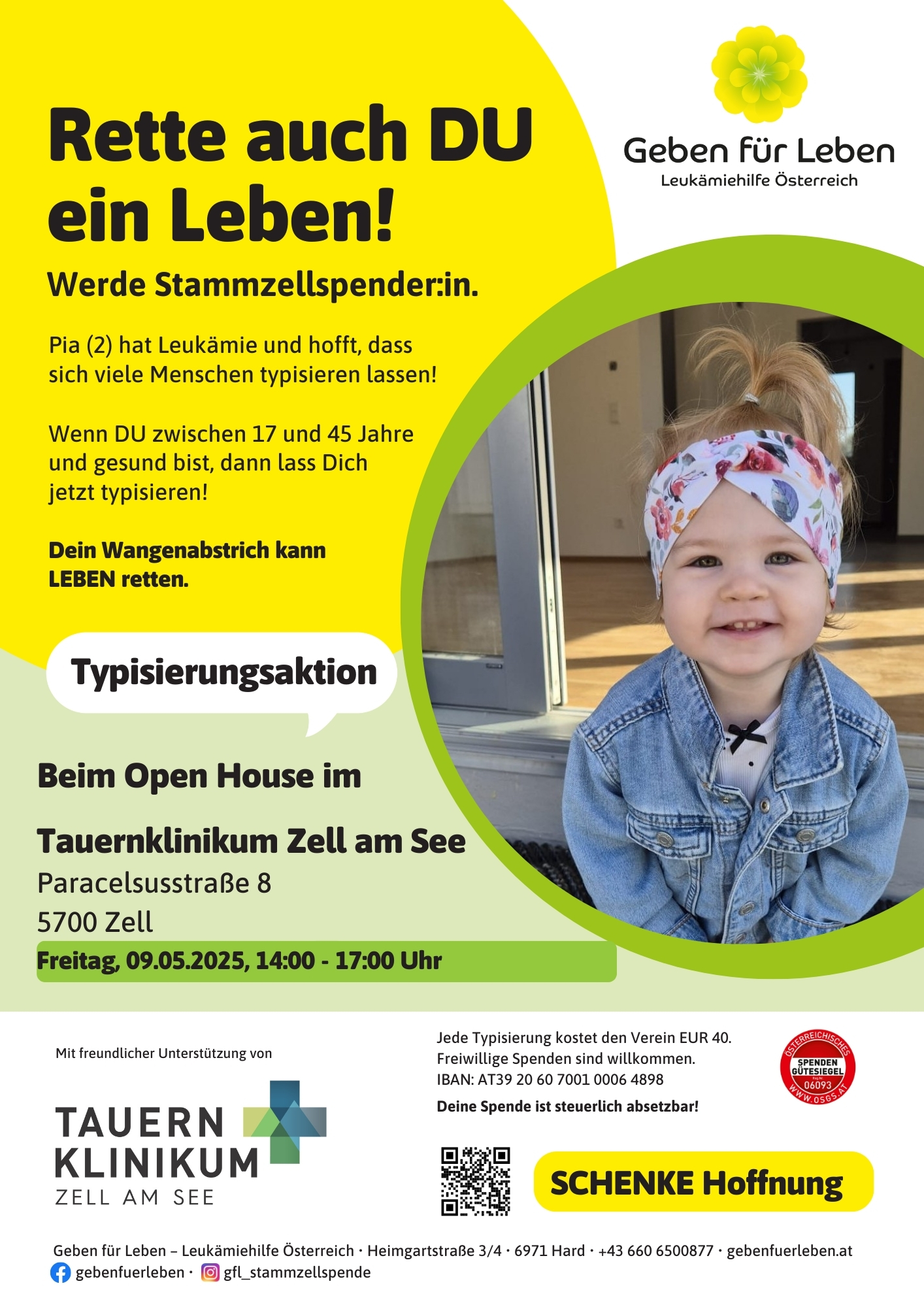 Freitag, 09. Mai 2025 von 14:00 bis 17:00 Uhr im Tauernklinikum in Zell am See.