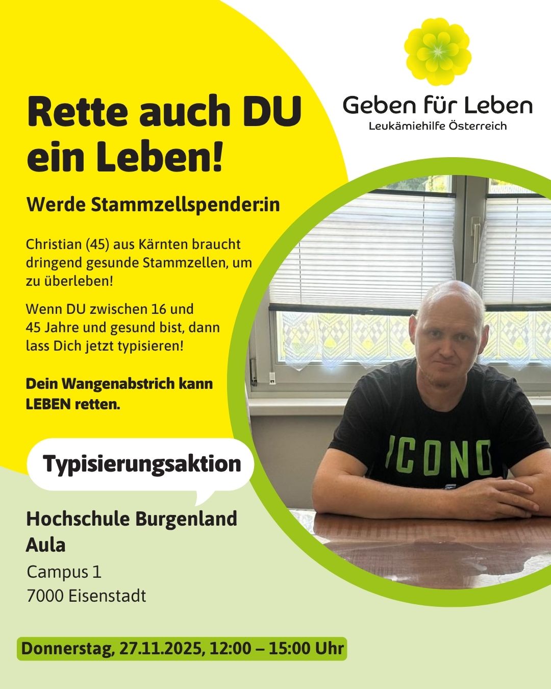 Donnerstag, 27. November 2025 von 12:00 bis 15:00 Uhr in der Aula der Hochschule Burgenland
