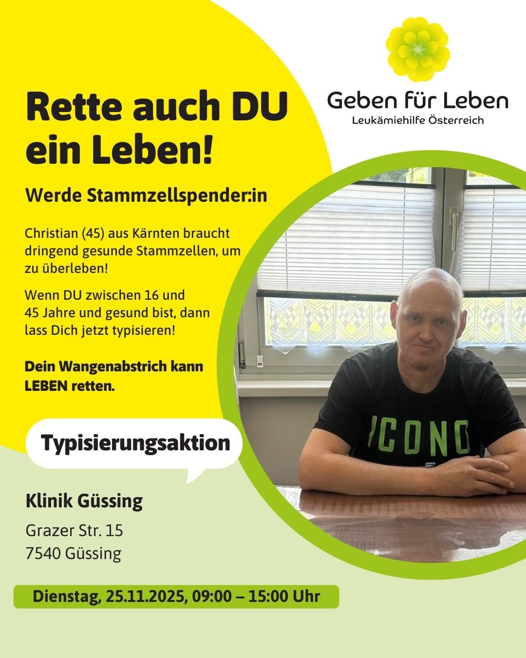 Dienstag, 25. November 2025 von 09:00 bis 15:00 Uhr in der Klinik Güssing - Download Plakat