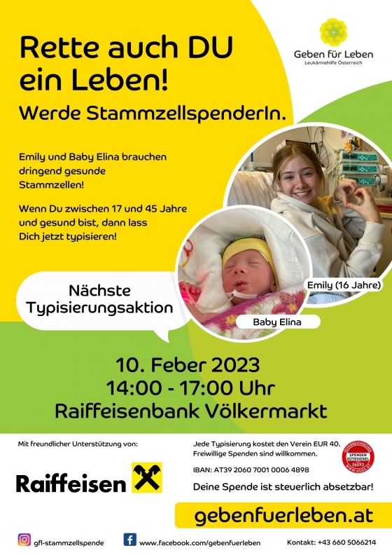 10. Februar 2023 von 14:00 bis 17:00 Uhr in der Raiffeisenbank Völkermarkt - Download Plakat