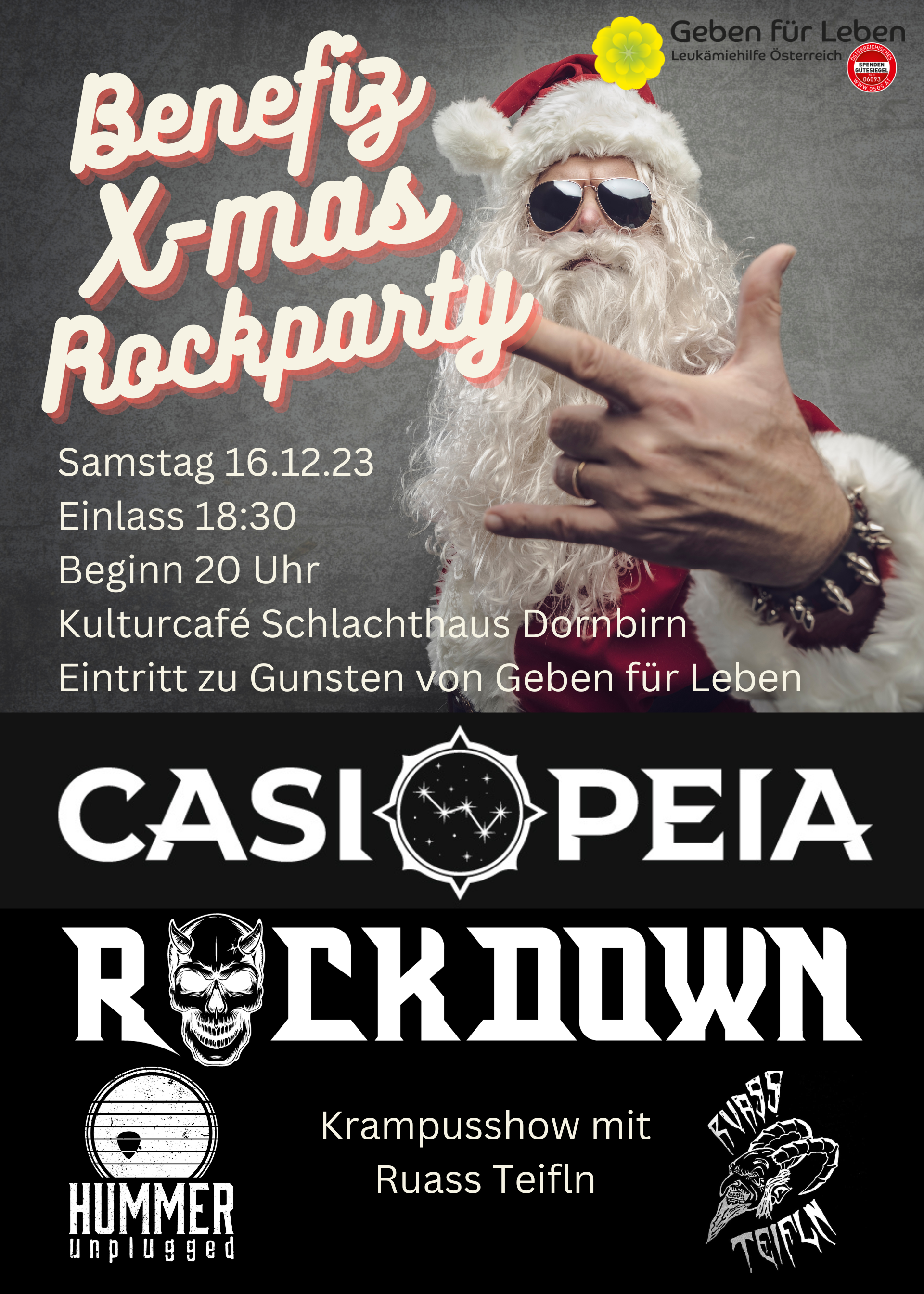 Benefiz X-mas Rockparty mit Casiopeia am 16.12.2023 um 18:30 Uhr - Download Flyer