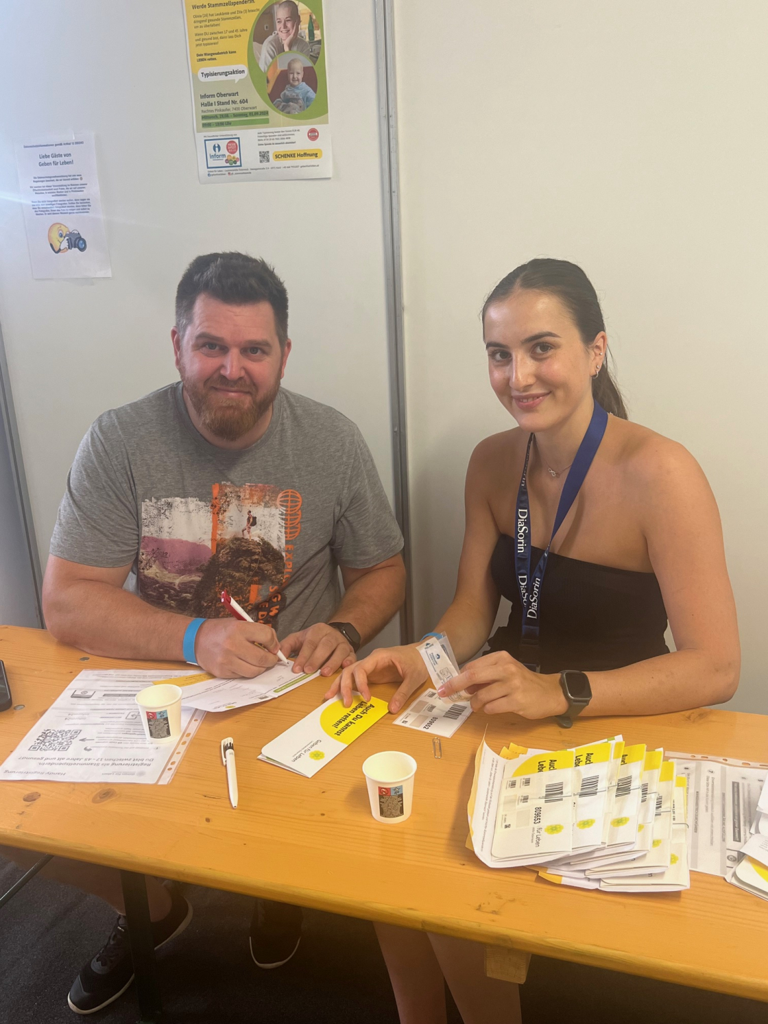 Ein besonderes Dankeschön geht an Dr. Barbara Pelzmann, unsere Ärztin bei „Geben für Leben“, mit ihrem unermüdlichen Einsatz, Kurt Posch, der auch immer wertvoll unterstützend bei jeder Typisierungsaktion im Burgenland dabei ist, sowie Lena Kaiser, eine engagierte Medizinstudentin, die tatkräftig am Stand mitgewirkt hat. Lenas Einsatz ist besonders berührend, da ihre Mutter Barbara bereits 2021 eine Anforderung für eine Stammzellspende erhalten hatte. Auch Bettina Schendl möchten wir herzlich danken – sie stieß durch Lisas emotionales Tagebuch aus den sozialen Medien auf uns und war ebenfalls eine wertvolle Unterstützung.