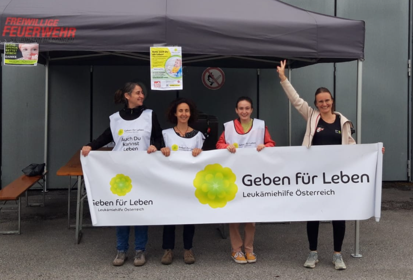 Kristina Fenninger (GFL) aus Salzburg übernahm dieses Aufgabe mit drei freiwilligen Helferinnen und reiste nach St. Johann im Pongau. Dort angekommen, stand ein Zelt bereit und los gings. In drei Stunden konnten 44 potenzielle Lebensretter typisiert werden!