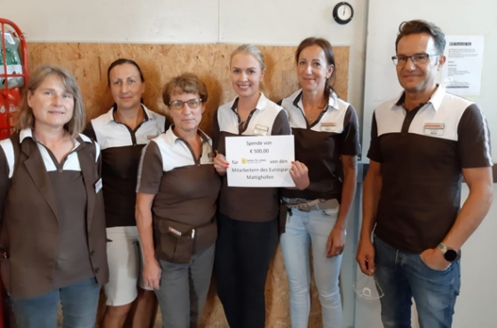 Nachdem die Großmutter des kleinen Michael (4 Monate) beim Eurospar in Mattighofen arbeitet, haben ihre KollegInnen für die vielen Typisierungen gesammelt. Sie spendeten den stolzen Betrag von € 500,-.