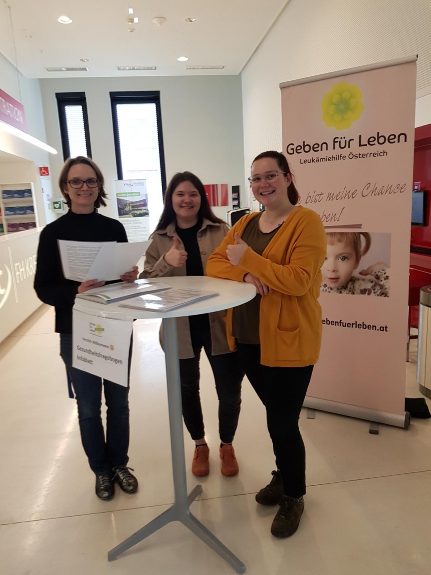 Vielen Dank an Markus Golla, (Leitung Institut für Pflegewissenschaft / Studiengangsleitung Gesundheits- & Krankenpflege) und an Tanja Taubenschmid (Assistenz) für die Möglichkeit dieser Typisierungsaktion.
