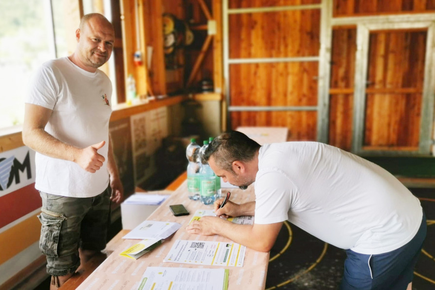Foto vlnr: Michael Russwurm mit einem potenziellen Spender beim Registrieren – Download Foto