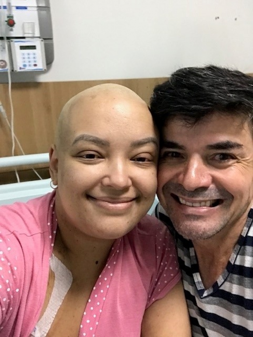 "Hallo, mein Name ist Daniela, ich bin 38 Jahre alt und lebe in São Paulo, Brasilien. Im Oktober 2019 erfuhr ich, dass ich akute myeloische Leukämie hatte. Mein Körper war zu 60 % von der Krankheit befallen. Ich habe sechs Monate lang eine intensive und sehr schwierige Behandlung mit Chemotherapien gemacht. Zuerst wurde bei meiner Leukämie keine Stammzell-Transplantation verordnet. Trotzdem wurde ein Test mit meiner Schwester durchgeführt und sie war zu 50% kompatibel mit mir.