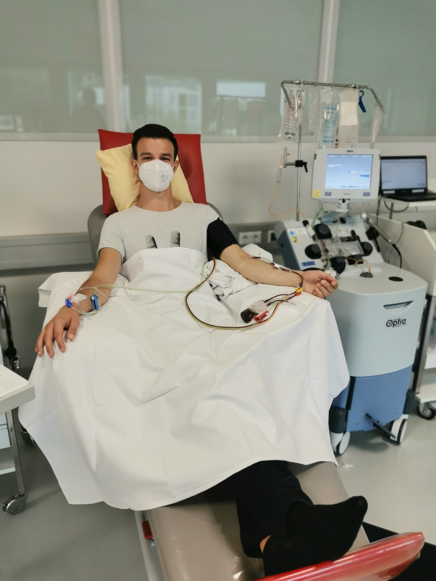 Im April 2021 erhielt ich meine erste Transplantation. Ich war 65 Tage lang im Krankenhaus. Bald erfuhren wir, dass die Transplantation nicht funktioniert hatte. Meine Ärzte forderten bereits den internationalen Spender Raphael an. Ich hatte große Angst, dass er wegen der Pandemie aufgeben würde. Aber mein Retter ist nicht nur mutig, sondern auch sehr großzügig, und im September 2021 erhielt ich die Stammzellen von Raphael.