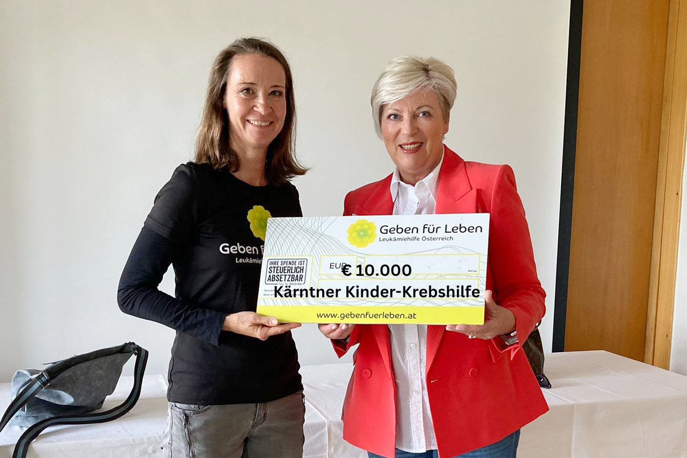 Die Kärntner Kinder-Krebshilfe unterstützt Geben für Leben seit vielen Jahren im Kampf gegen Leukämie. Auch heuer erhielten wir wieder eine großzügige finanzielle Unterstützung in der Höhe von € 10.000.