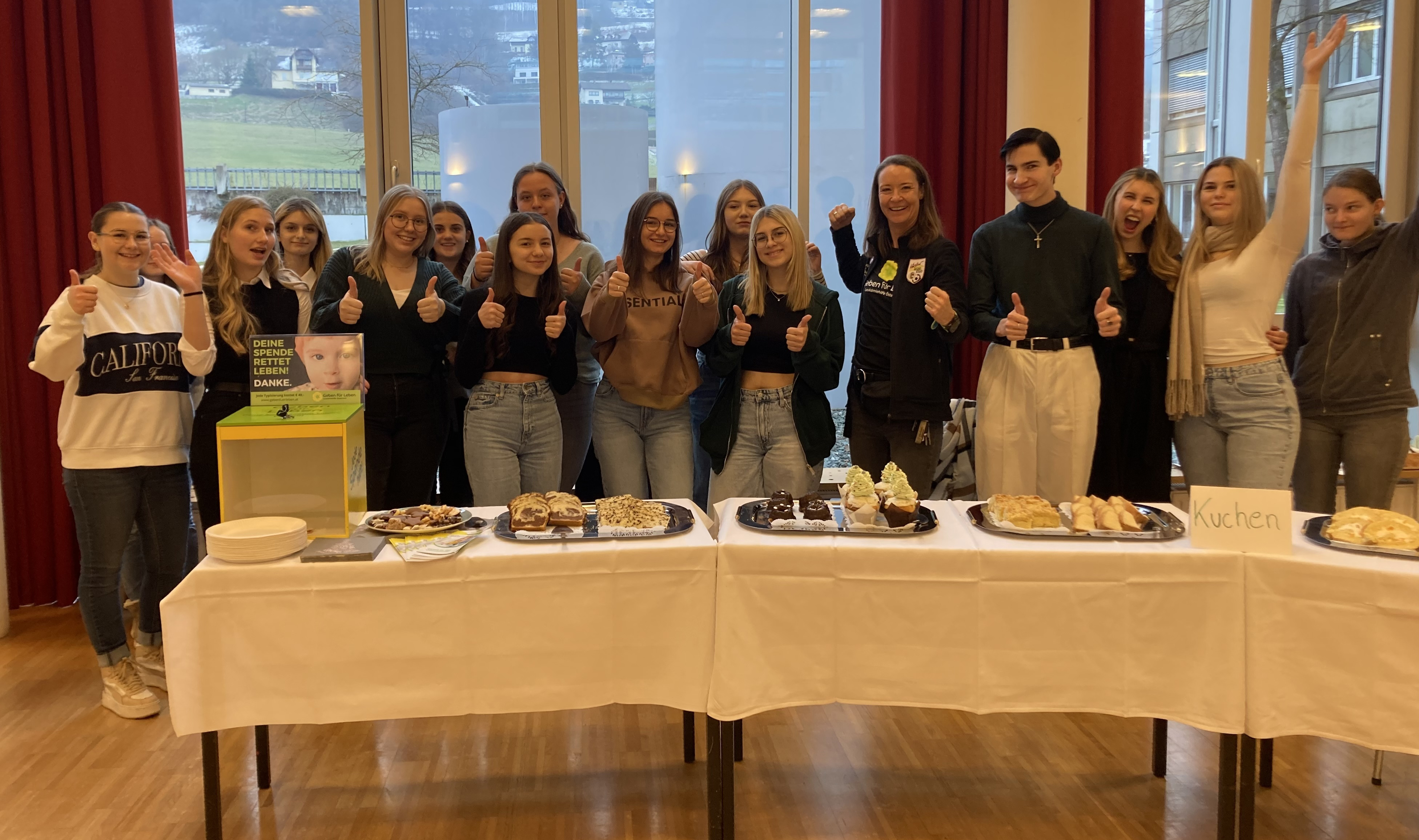 Dieses Sozialprojekt wurde von den Schülern selbstständig weitergeführt und ausgebaut. An diesem Vormittag ließen sich insgesamt 67 Jugendliche typisieren. Dank eines großartigen Kuchenbuffets sammelten die Schüler:innen vor Ort € 216,83.