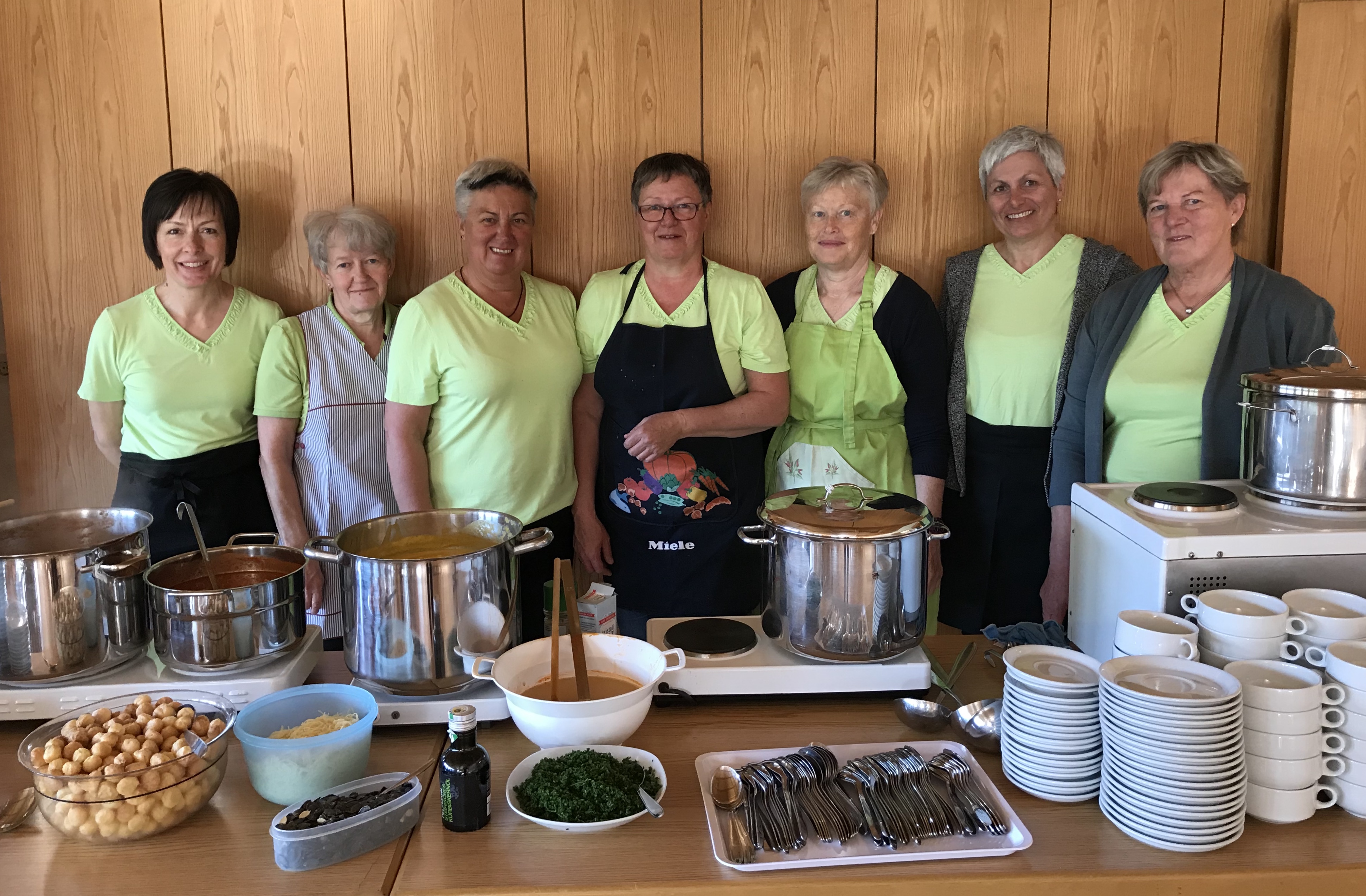 Bild vlnr: Melitta Peter, Gretl Kaufmann, Pia Berchtold, Theresia Feurstein, Marika Zambonin, Gabi Schmid, Margarethe Meese – Download Foto