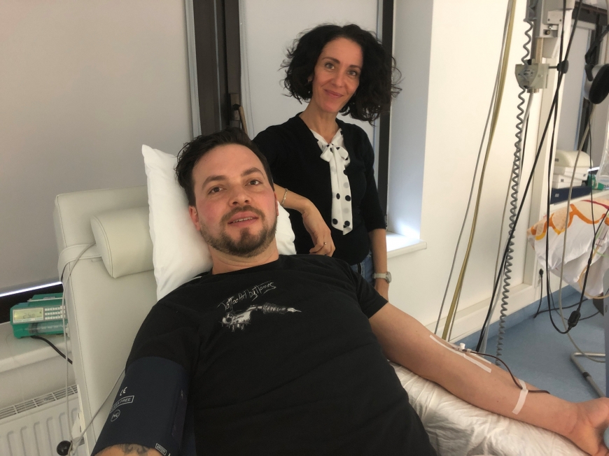 Bild: Unser 300. Spender Manuel und seine Frau Dorothea bei der Stammzellspende in Gauting – Download Foto