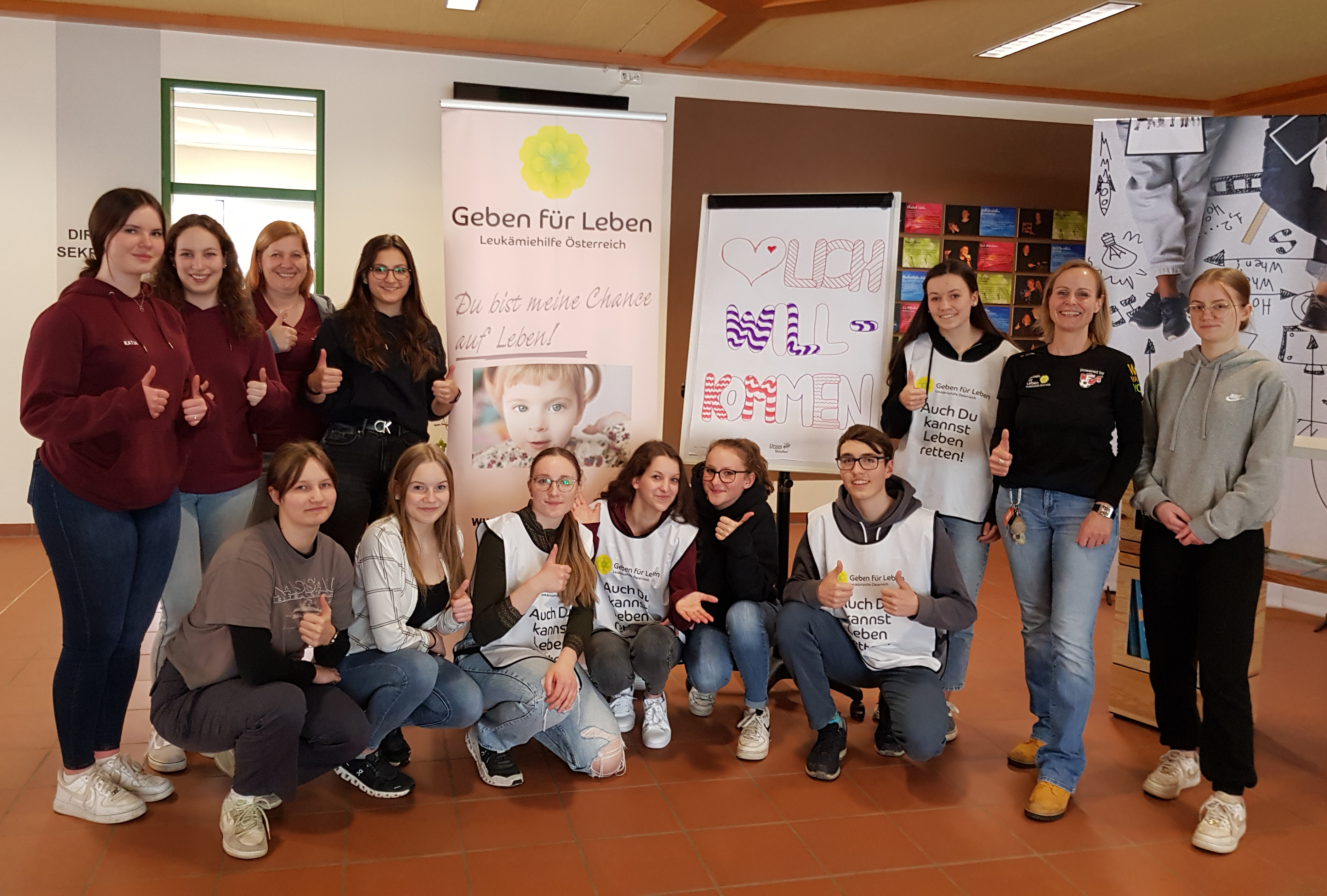 Das Team ging durch alle Klassen, um gesunde SchülerInnen und LehrerInnen zwischen 17 und 45 Jahren zur Aktion einzuladen. Plakate wurden in der Schule und Umgebung aufgehängt und selbstverständlich fleißig in den sozialen Medien gepostet. 63 neue LebensretterInnen ließen sich als potenzielle Stammzellspender aufnehmen. Selbst ein Pärchen aus Kremsmünster scheute den langen Anfahrtsweg nicht, um sich typisieren zu lassen!