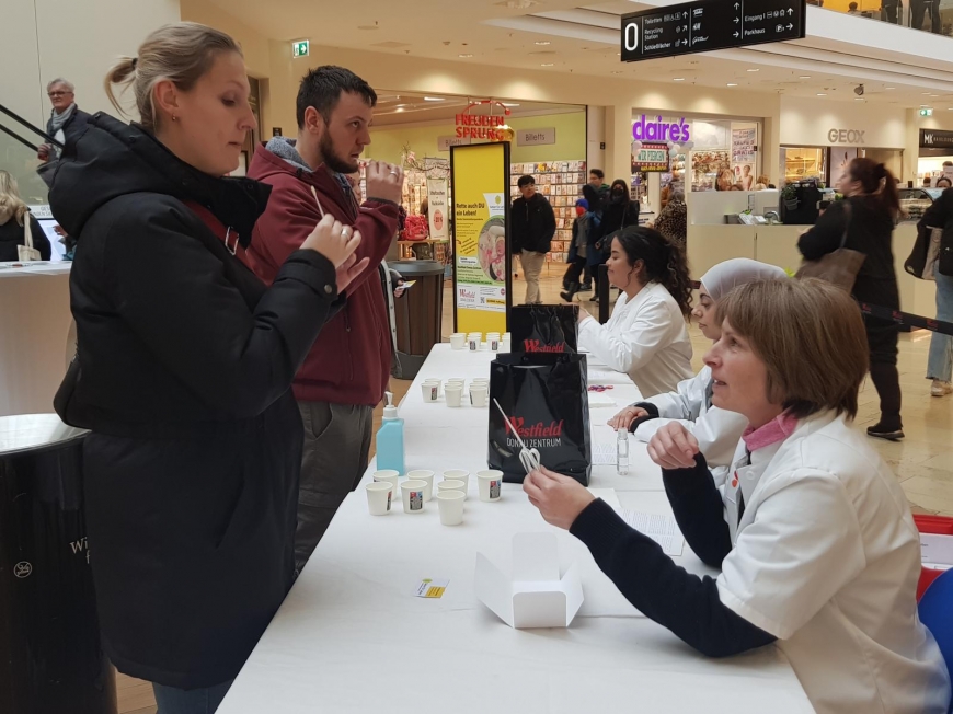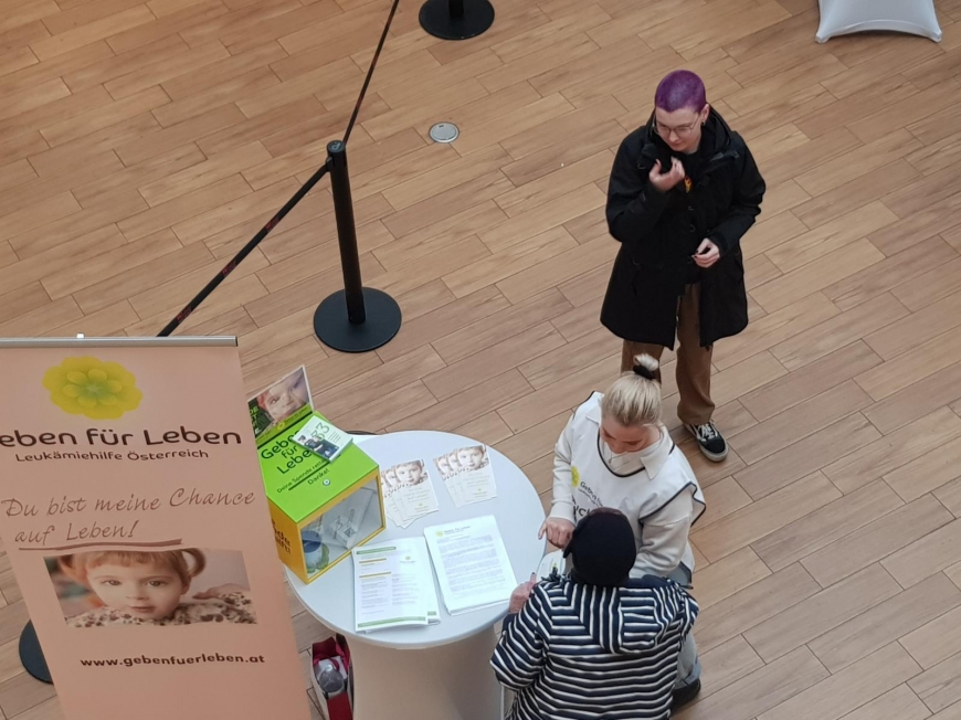 Das Interesse der Kunden war sehr groß und viele waren von der Möglichkeit beeindruckt, mit einem einfachen Wangenabstrich in wenigen Minuten einem Menschen, der an Leukämie erkrankt ist, eine Chance auf Überleben schenken zu können! 102 Menschen ließen sich als Stammzellspender in der Datei registrieren!