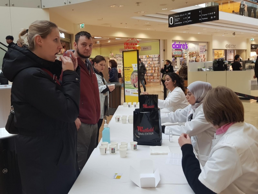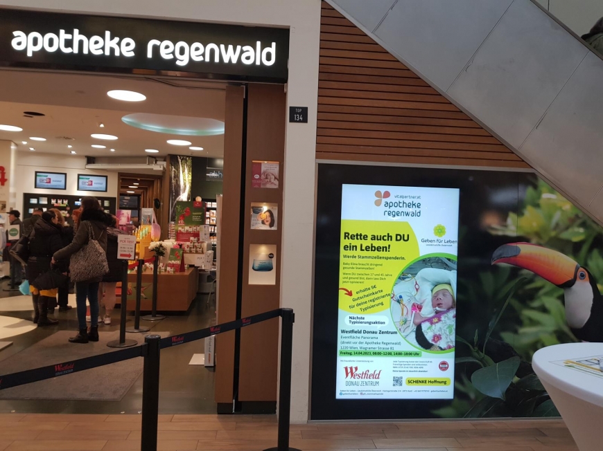 Beworben wurde an allen Ecken und Enden: Über soziale Medien, über die interne App für 3.500 Mitarbeiter, in der Apotheke Regenwald, in der Volkshochschule Donaustadt, im Hilfswerk Donaustadt und auf den hauseigenen Kanälen sowie den Monitoren im Center. Die Influencerin des Centers, Vanessa @vannese sowie die Tuningfirma @GARAGE99 „typisieren mal anders“ riefen ebenfalls zur Typisierung auf.