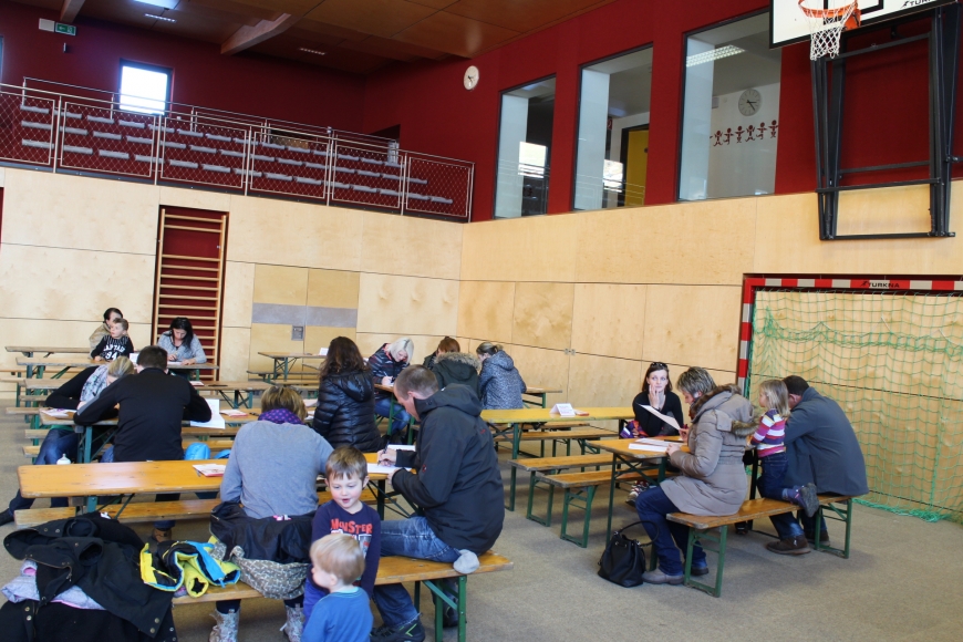 Daniela Berger hat sich dabei selbst übertroffen. Obwohl sie noch nie eine derartige Veranstaltung durchgeführt hat, organisierte sie uns eine tolle Turnhalle mit Technik, viele freiwillige Helfer und zahlreiche Geldspender, die uns vor Ort unterstützten.