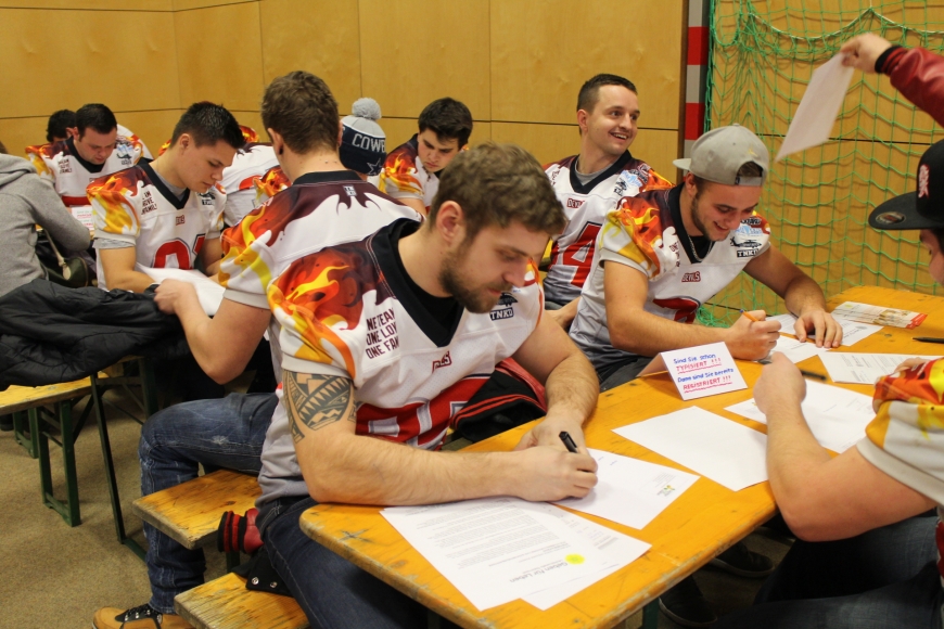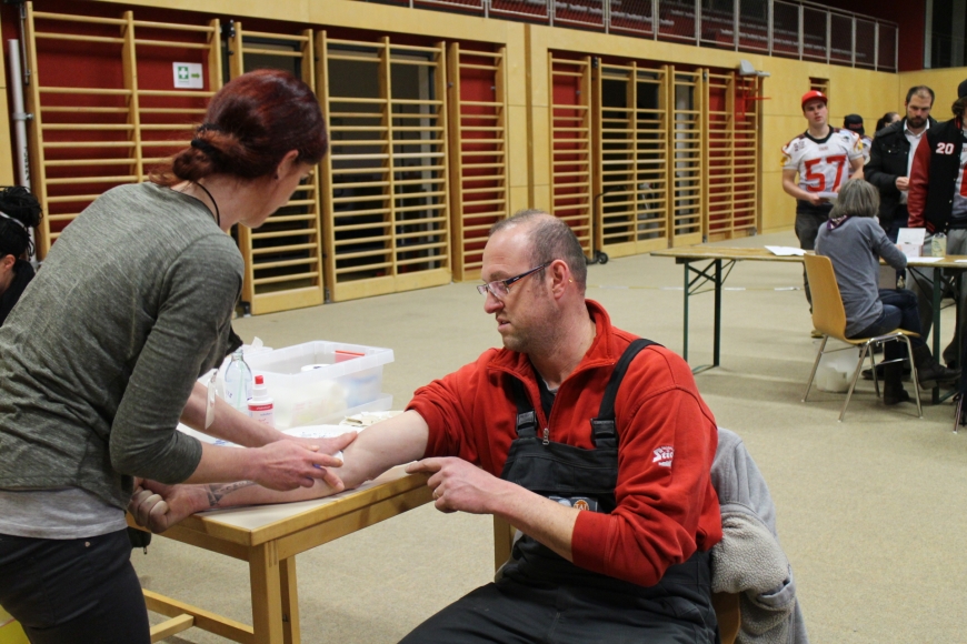 Und obwohl Typisierungsaktionen in der Region gänzlich unbekannt waren und die Menschen damit nur wenig anfangen konnten, kamen 297 Menschen in die Volksschule Piesendorf, um sich typisieren zu lassen! Dafür nahmen sie teilweise große Strecken auf sich. Und kurz vor Ende der Aktion stürmten noch die "Devils", der lokale American Football – Verein unsere Halle und ließen sich gemeinsam typisieren!