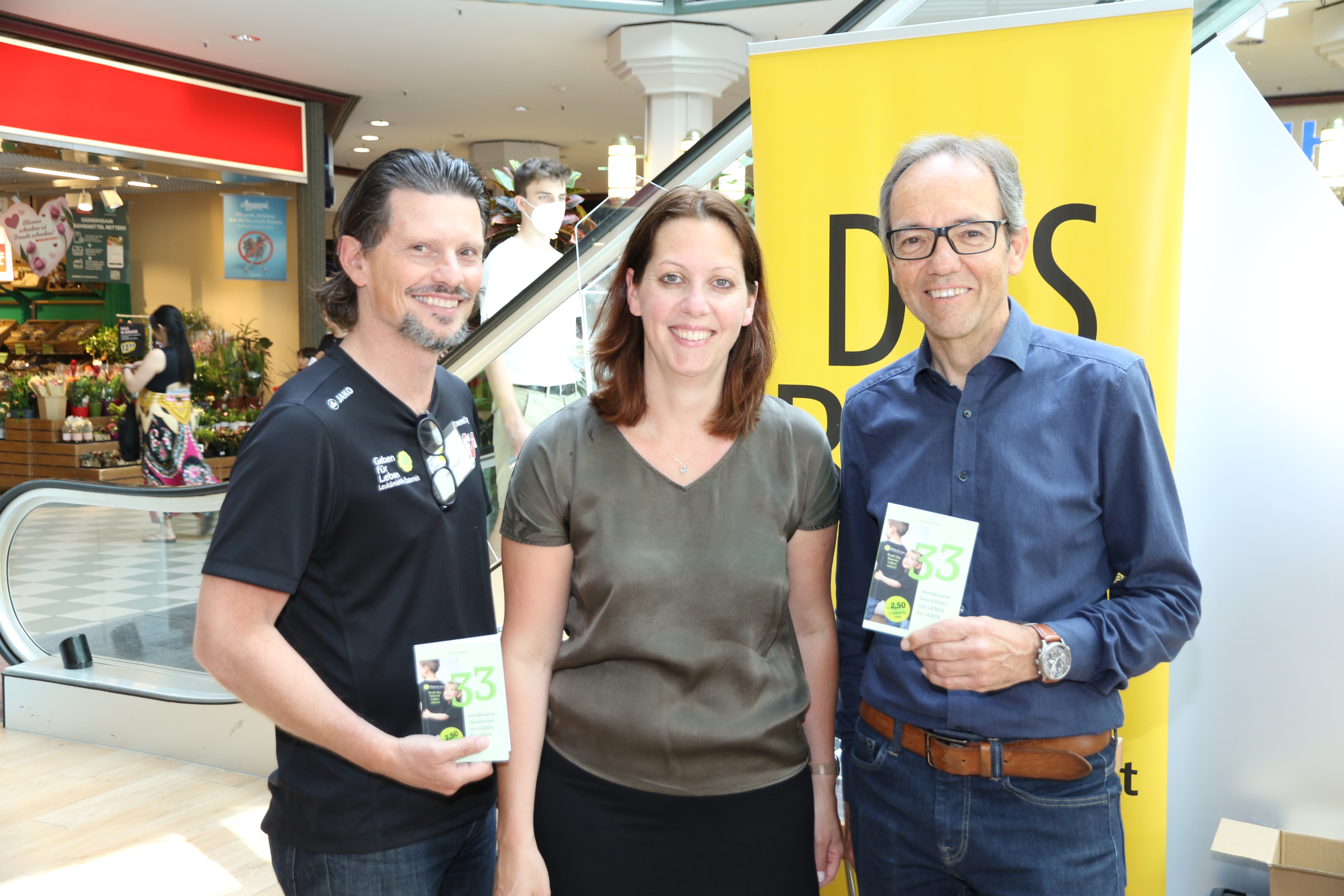 Während unserer Typisierungsaktion im Messepark stellten wir das Buch dem interessierten Publikum vor. Günter Wohlgenannt von der Buchhandlung "DAS BUCH" und Nina Winkler vom Verlag "edition-v" unterstützten uns dabei. Vielen Dank dafür.