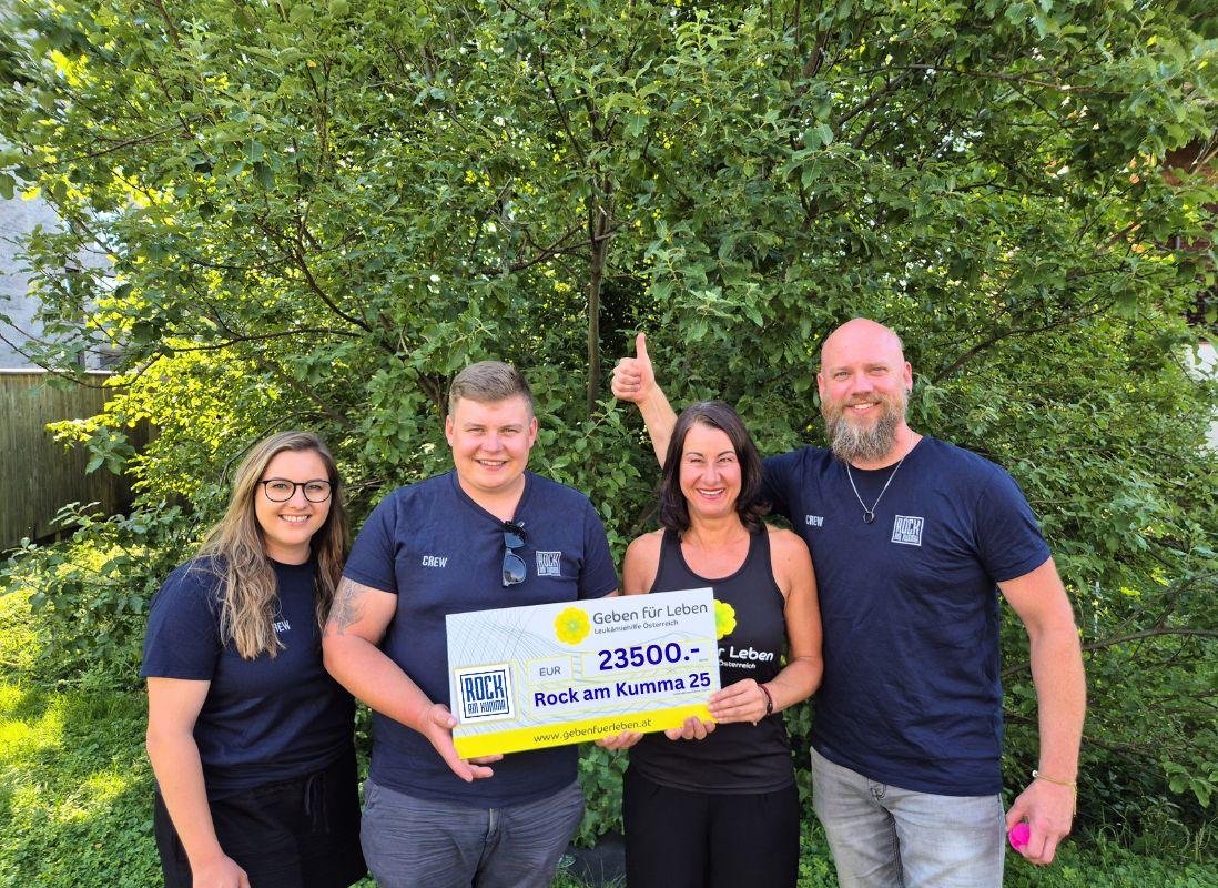 Bereits zum vierten Mal wurde Götzis zur Bühne für gelebte Solidarität: Beim Charity-Festival „Rock am Kumma“ kamen beeindruckende 31.700 Euro an Spendengeldern zusammen. Davon durfte sich Geben für Leben – Leukämiehilfe Österreich über 23.500 Euro freuen – eine wertvolle Unterstützung im Kampf gegen Leukämie.
