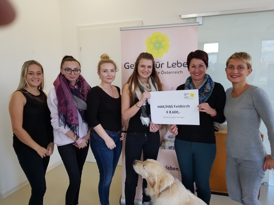 Am 20. Oktober 2017 führten wir zusammen mit vier jungen Frauen der HAK/HAS Feldkirch ein Schulprojekt durch. Unter dem Motto "Die Chance auf Leben" organisierte das engagierte Team eine Typisierungsaktion mit allem, was dazu gehört. In nur vier Stunden konnten knapp 200 Menschen typisiert werden und über Sponsoren brachten sie stolze € 8.600,- in die Spendenkasse.
