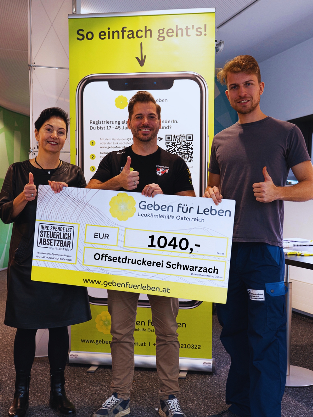 Als Anfang Dezember 2022 der Lehrlingsausbilder der Offsetdruckerei Schwarzach Benjamin Huber bei der Aktion „Sprung ins kalte Wasser“ vom Verein „Geben für Leben“ mitgemacht hat, stellte er sich die Frage „Wie noch mehr getan werden kann?“. Und so entstand die Idee für eine Firmentypisierung in der Offsetdruckerei Schwarzach.
