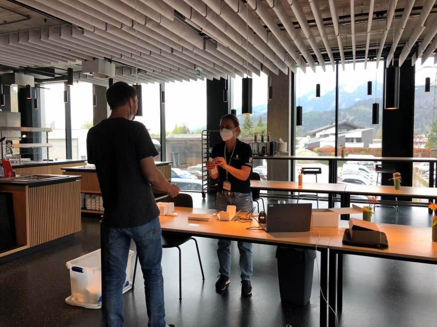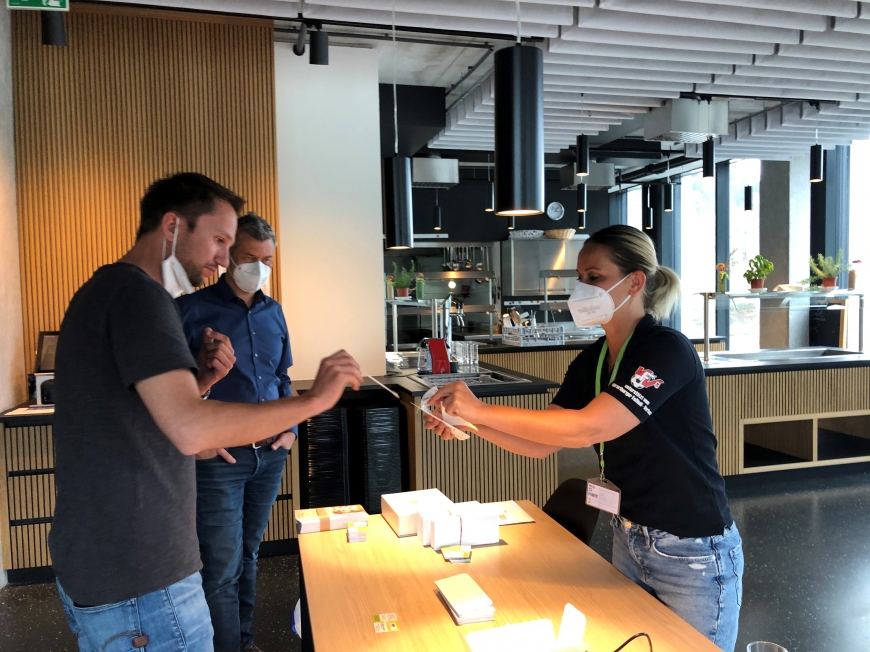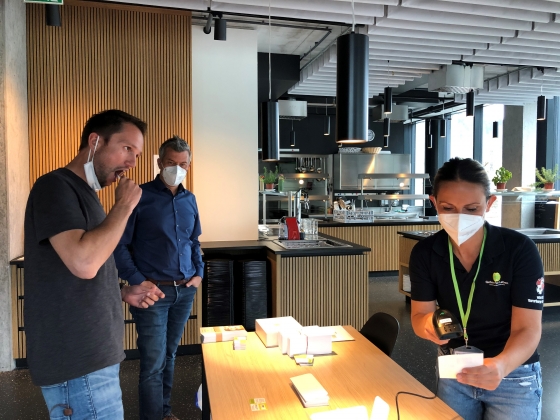 Bild: Die engagierte Belegschaft von Gantner Electronic bei der Typisierung – Download Foto