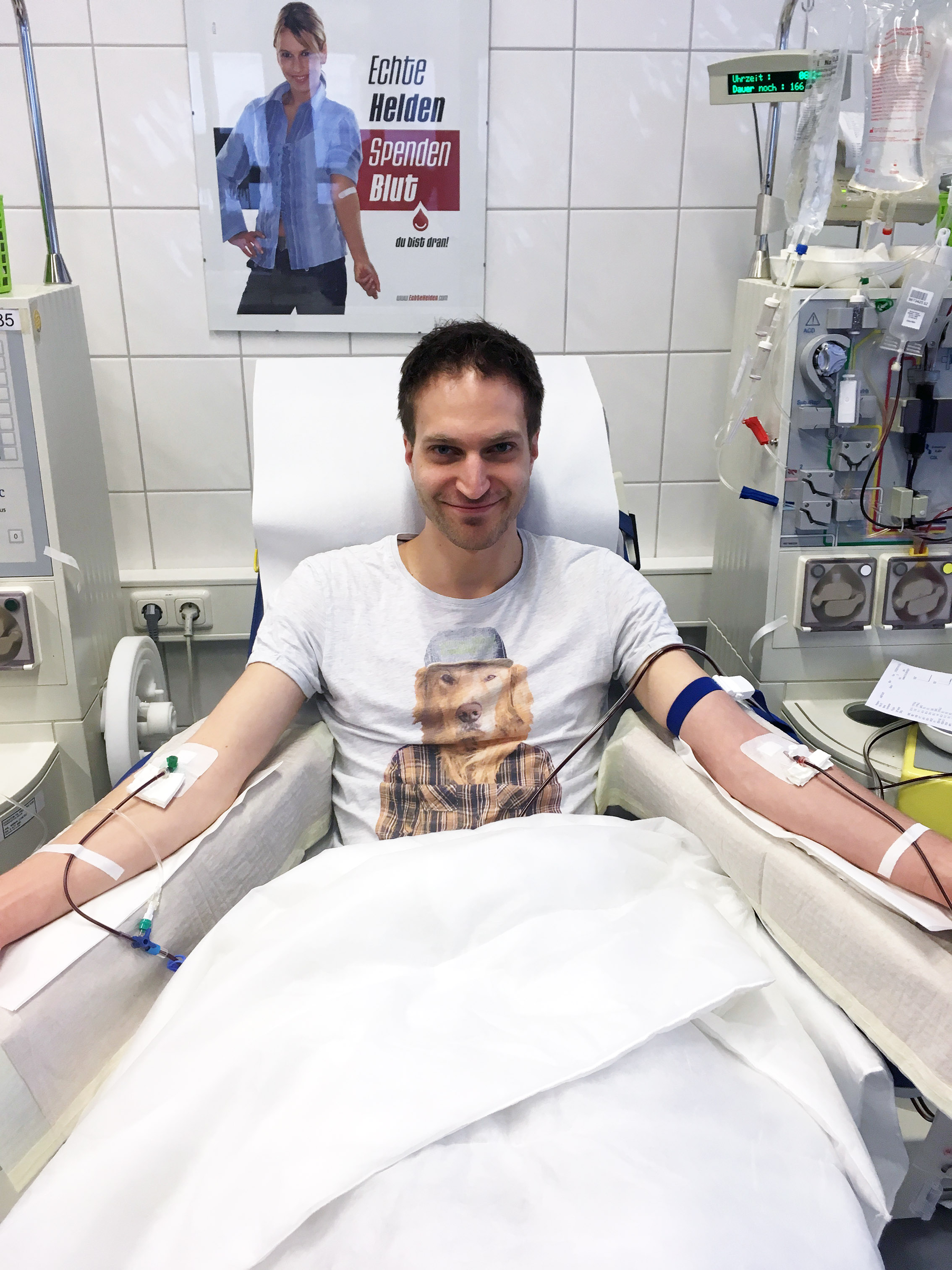 Die Mobilisierung in den Tagen davor verlief fast völlig komplikationslos, nur an einem Tag hatte ich leichte Gliederschmerzen und war etwas schlapp. Die Spende selbst dauerte in meinem Fall – wie mir schon im Vorfeld angekündigt worden war – relativ lange, nach fünfeinhalb Stunden waren dann aber doch genug Stammzellen gesammelt um auf eine weitere Spende am nächsten Tag verzichten zu können. In den ersten Stunden danach war ich noch etwas wackelig auf den Beinen und hatte ein wenig mit meinem Kreislauf zu kämpfen, schon am Abend war ich aber wieder fit.