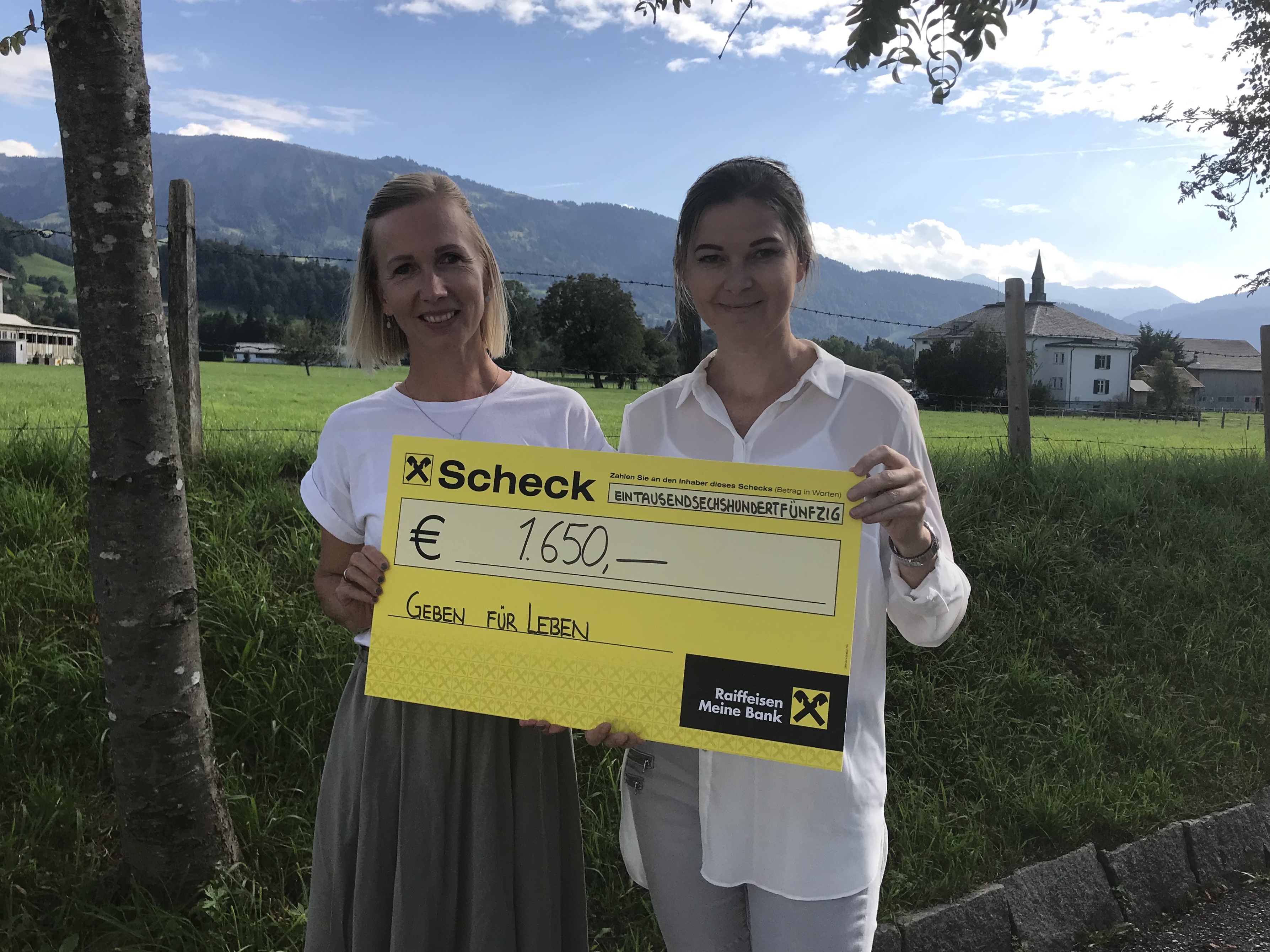 Diese wurden uns als Scheck für unsere Spendenkasse überreicht. Vielen Dank an Daniela Madlener-Treffner (Projektleiterin von Womanlife und Kundenbetreuerin) und das engagierte Team der Raiffeisenbank Mittelbregenzerwald für dieses schöne Projekt..