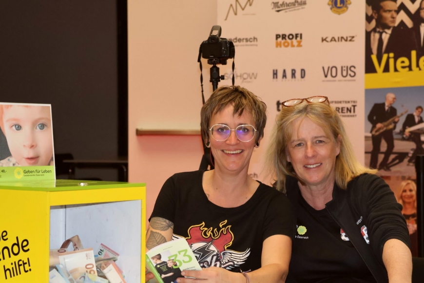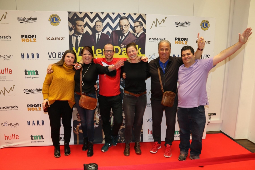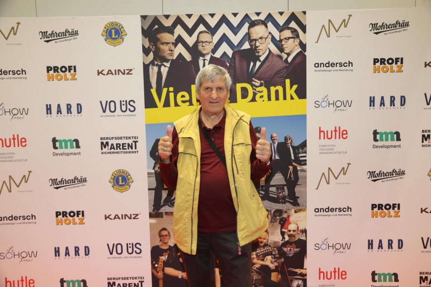 Anstatt eines Eintritts wurden Spenden gesammelt. Zudem wurden kleine Schnäpse, gesponsert von der Firma Prinz, gegen Spenden vergeben. Diese zwei Aktionen brachten über €8.500,- ein. Dazu kamen Spendenschecks über € 1.500 des Lionsclubs Rheindelta-Hofsteig, sowie € 1.000, – von der Gemeinde Hard, die uns auch den Spannrahmen gratis zur Verfügung stellte und die Technikerstunden übernahm. Profi Holz Fink, Andrea Matt (Aurum et magis), tmn Development und Hutle Dornbirn spendeten noch einmal je € 350,-.