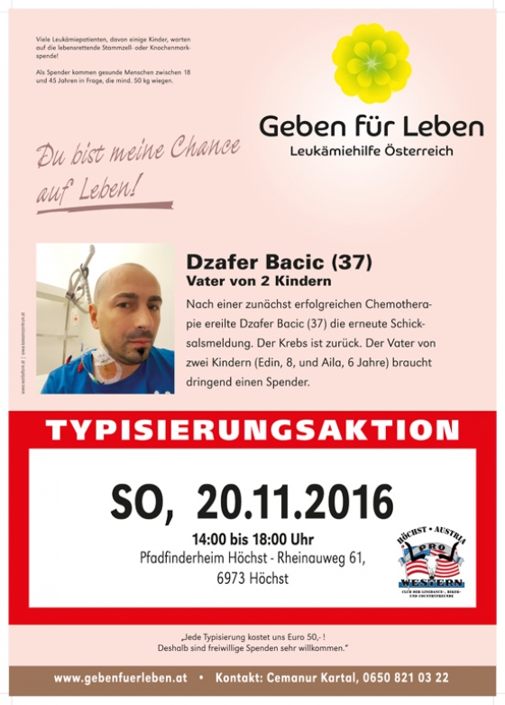 Nach unseren beiden Aktionen für den 8 jährigen Ünal in Feldkirch und den zweifachen Familienvater Dzafer in Höchst können wir mit großer Freude berichten, dass für beide Patienten ein Spender gefunden wurde! Beide Stammzellspenden wurden bereits durchgeführt und Ünal geht es gut. Auch von Dzafers Familie wissen wir, dass er die Stammzelltransplantation gut überstanden hat.