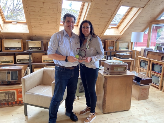 Nach ihrem letzten großzügigen Sponsoring war es uns ein Bedürfnis, den beiden unsere Wertschätzung mit einem "Award der Dankbarkeit" zu zeigen. Diesen überreichten wir in ihrem liebevoll eingerichteten "Museum für elektronische Geräte" im oberen Stock des Geschäftslokals.