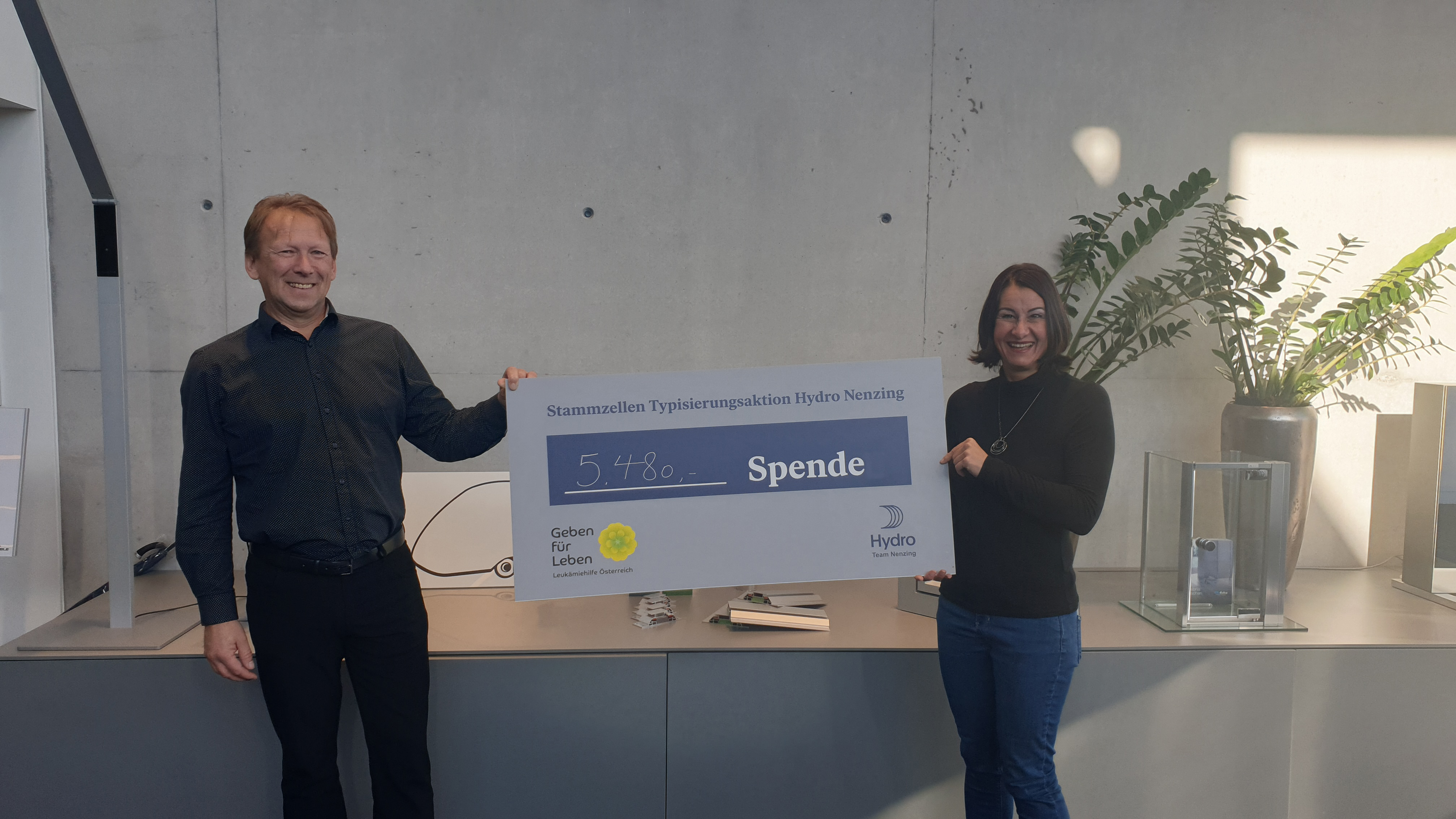 Nach ihrer Typisierungsaktion am 8. November spendete uns die Geschäftsführung einen großzügigen Betrag von € 5.480,-, den wir für die Suche nach unserem Weihnachtswunder sehr gut gebrauchen können. Vielen Dank an Geschäftsführer Manfred Rotschne und das engagierte Hydro-Team für Eure großartige Unterstützung!