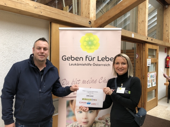 In Vertretung für die fünf heimischen Spielwarenhändler Spielewelt, Pinoccio, Behmann, Lumpis und Juriatti überreichte mir Mario Sieber von der Spielewelt einen Scheck über € 1000,-.