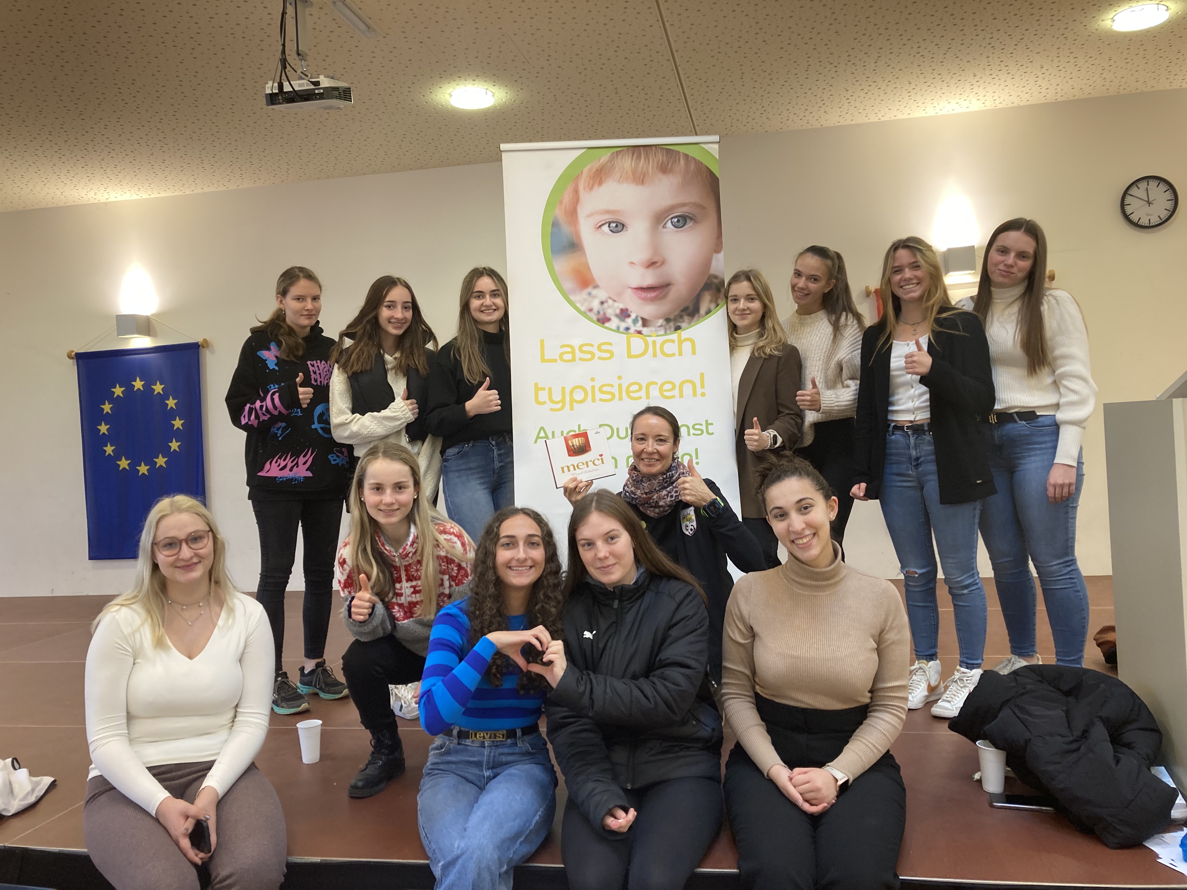 Die Schülerinnen der 3. Klasse von Harald Huber organisierten im Rahmen einer Projektarbeit eine Typisierungsaktion. Die Schülerinnen bezogen die Erfahrungen der Schüler von der 1. Typisierungsaktion im Mai mit ein und stellen eine top organisierte Aktion auf die Beine. An diesem Tag konnten wir gemeinsam mit den Schülern 65 Typisierungen durchführen. Dank der selbstgebackenen Weihnachtsbäckerei wurden rund € 110,- an Spenden gesammelt.