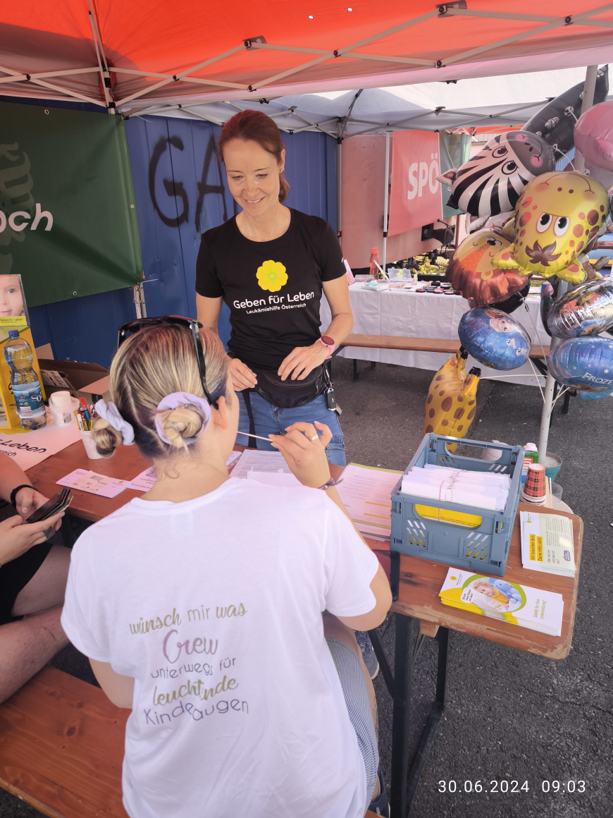 Am 30. Juni bestand im Rahmen des SPÖ-Kinderflohmarktes in Lieboch die Möglichkeit, sich typisieren zu lassen. An diesem sehr sommerlichen Vormittag nutzten insgesamt 17 Personen diese Möglichkeit.