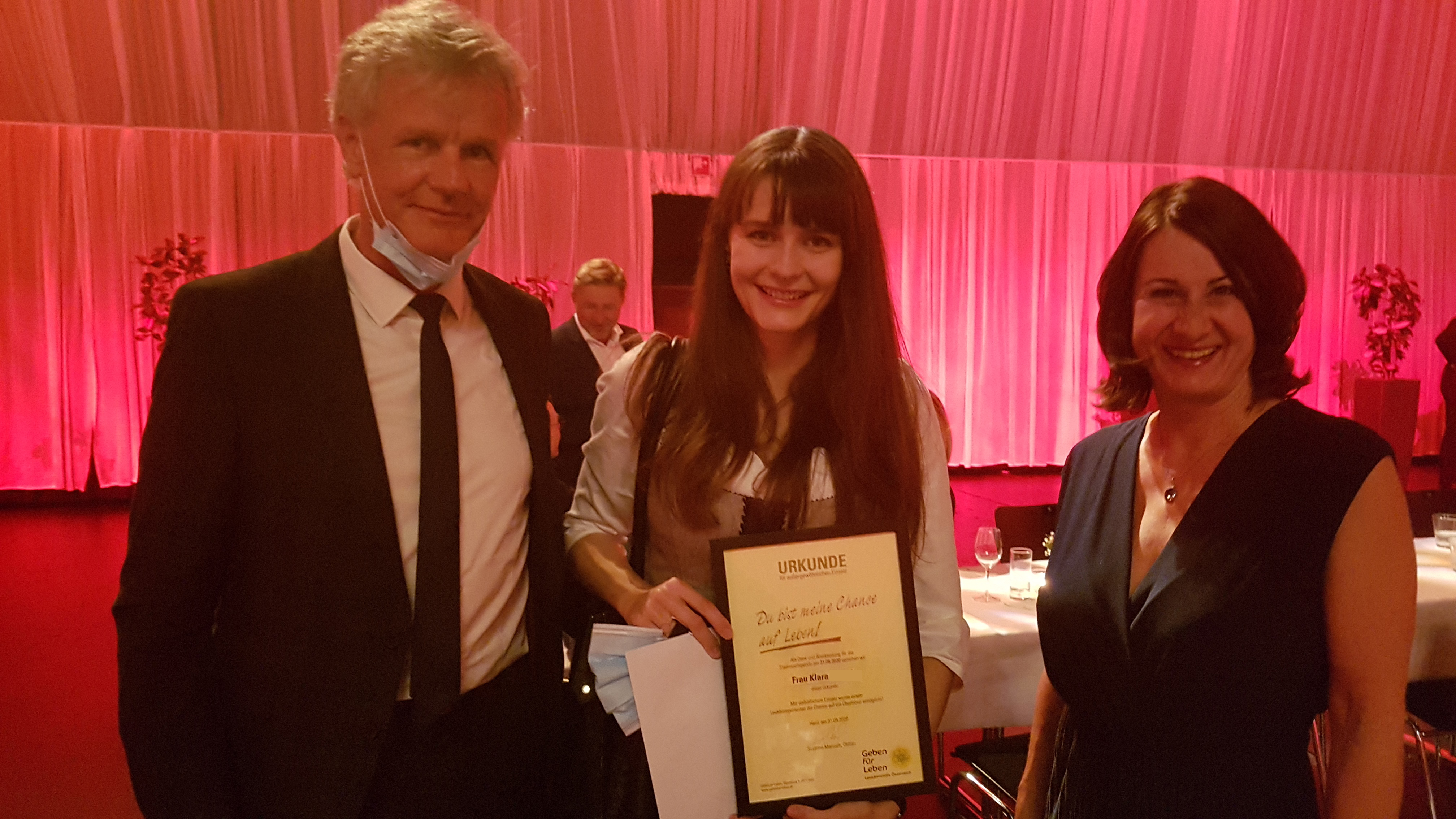 Denn Klara (23) aus Dornbirn / Vorarlberg war mit ihrem Vater Gerald ebenfalls auf der Verleihung. Und so nutzten wir diese Möglichkeit, ihr nach der Veranstaltung ihre Lebensretterurkunde zu übergeben. Zudem wollten wir ihr im Beisein ihres stolzen Vaters herzlich danken und gratulieren. Denn nur wenige Menschen können von sich behaupten, ein Leben gerettet zu haben. Hier ist ihr berührender Erfahrungsbericht.