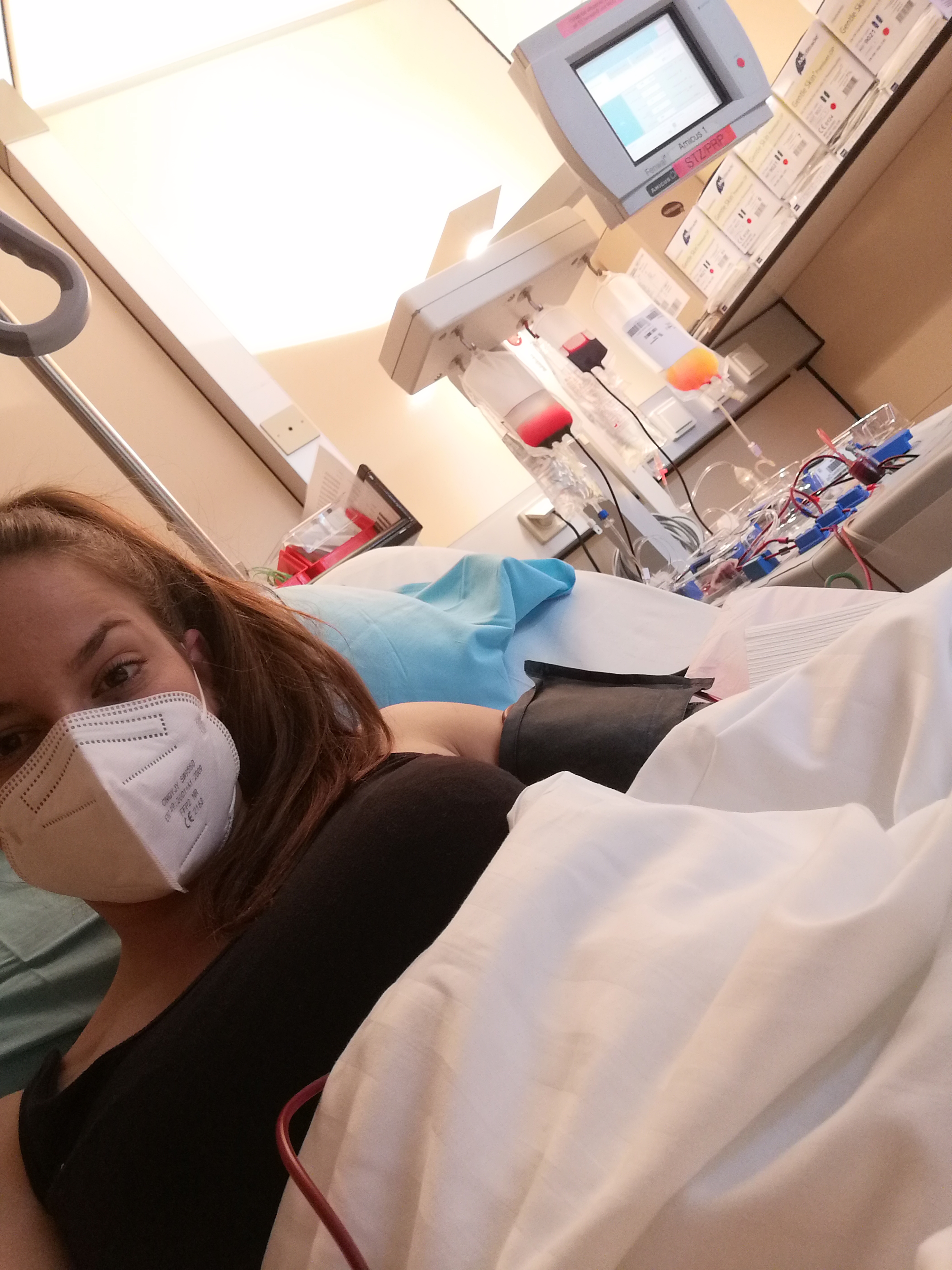 Bild: Unsere 244. Lebensretterin Anja bei der Stammellspende – Download Foto