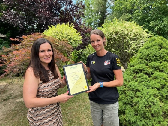 Bild vlnr: Übergabe der Lebensretterurkunde an Karin von unserer Julia Neugebauer – Download Foto