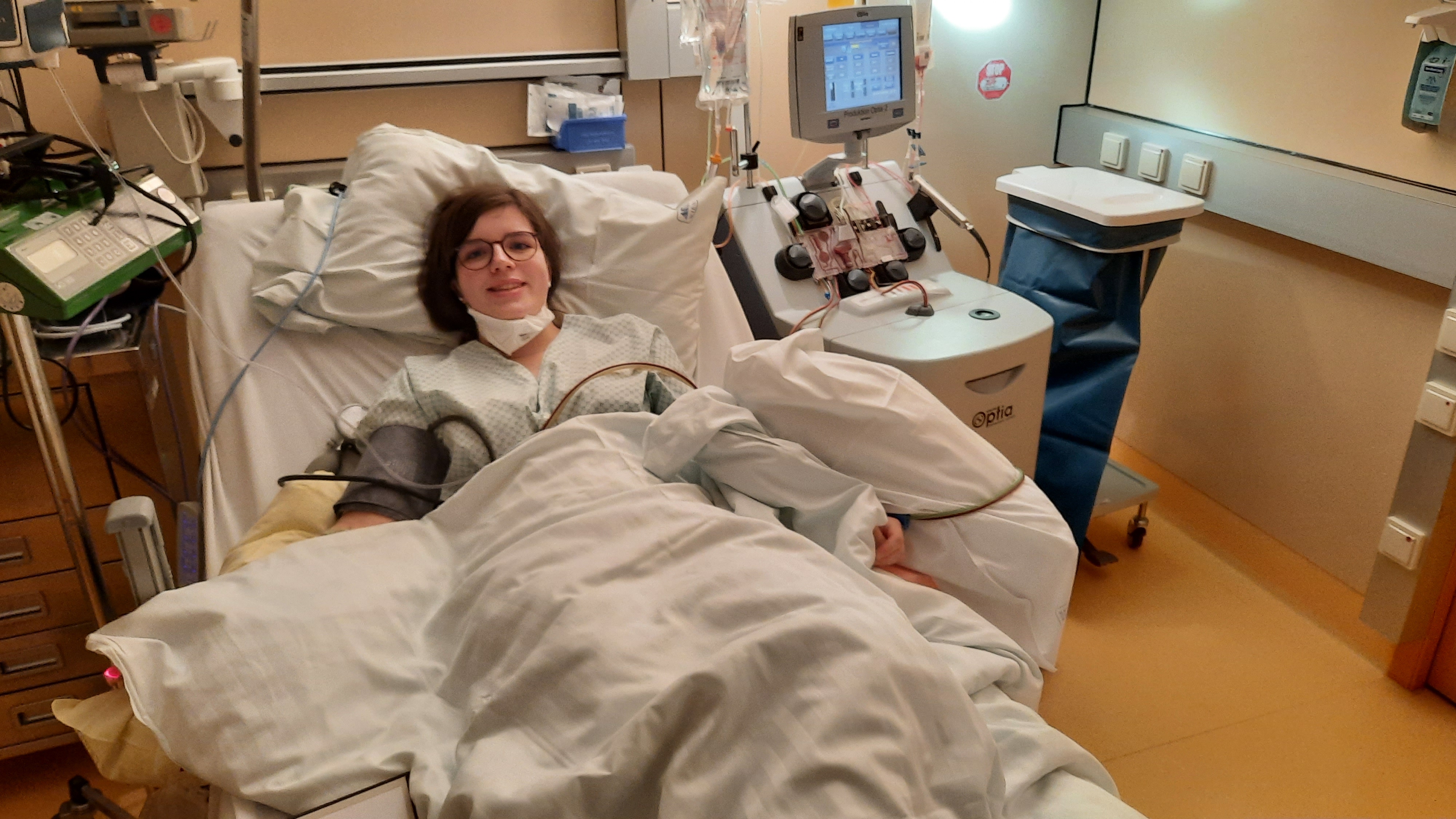 Bild: Unsere 356. Spenderin Tina bei der Stammzellspende – Download Foto