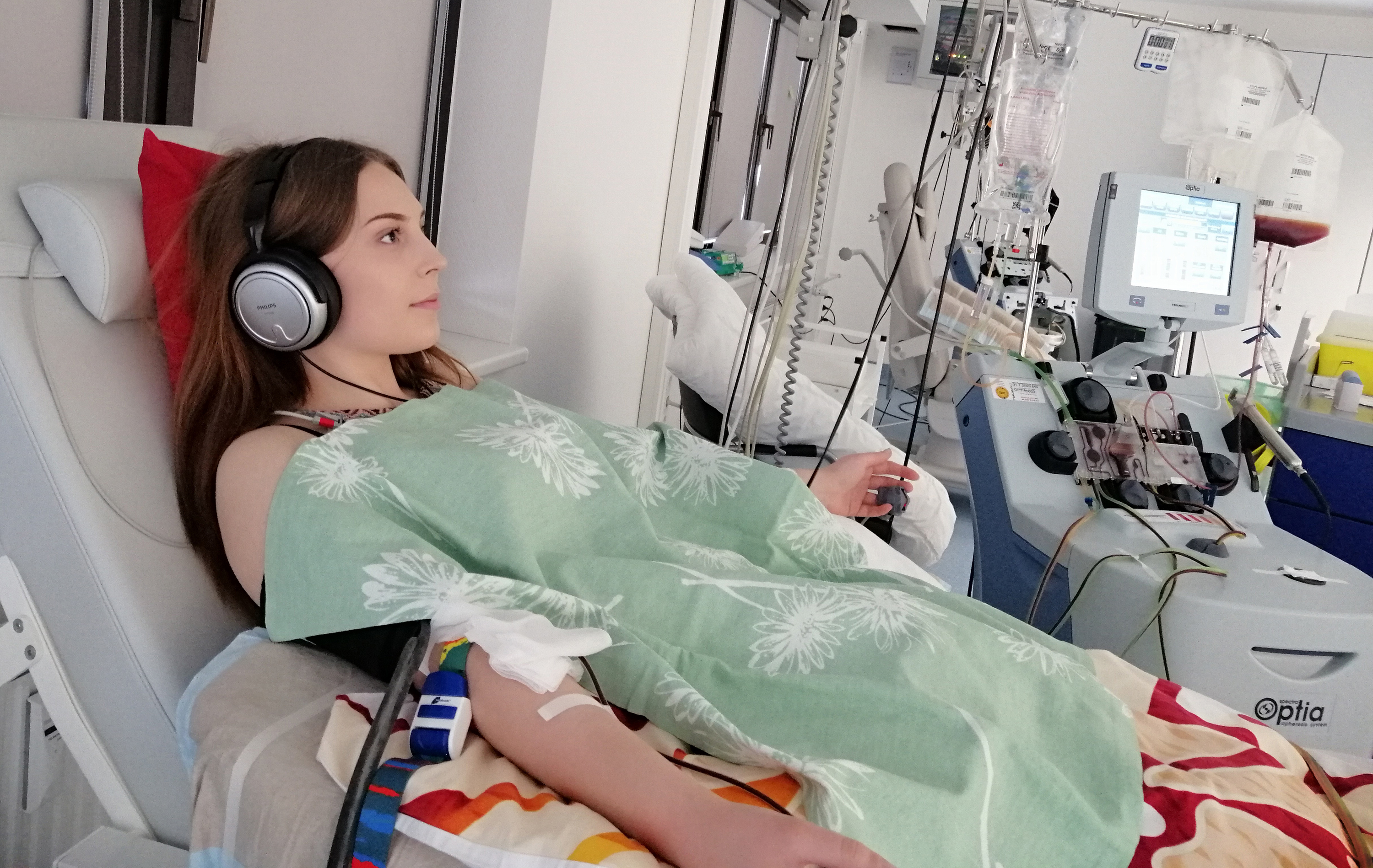 Bild: Unsere 167. Lebensretterin Julia bei der Stammzellspende – Download Foto
