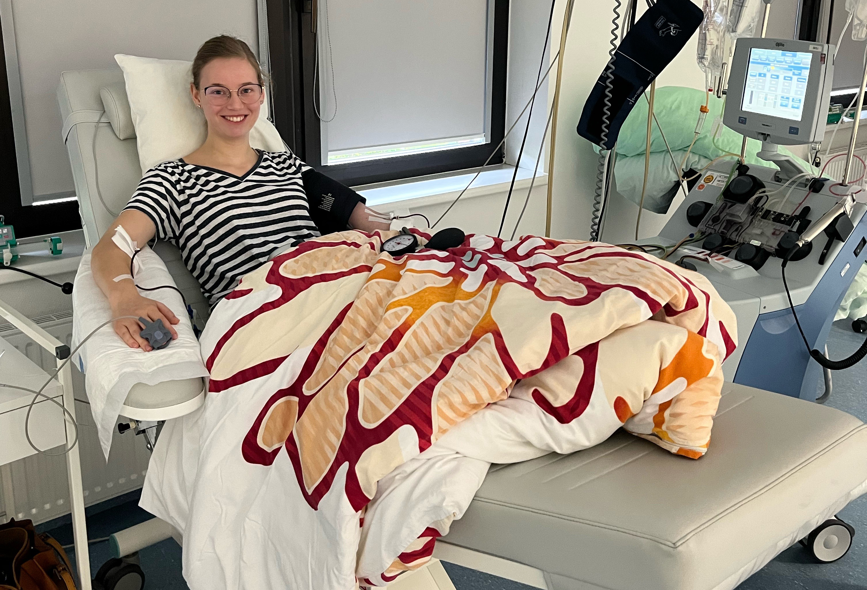 Bild: Kathrin bei der Stammzellspende – Download Foto