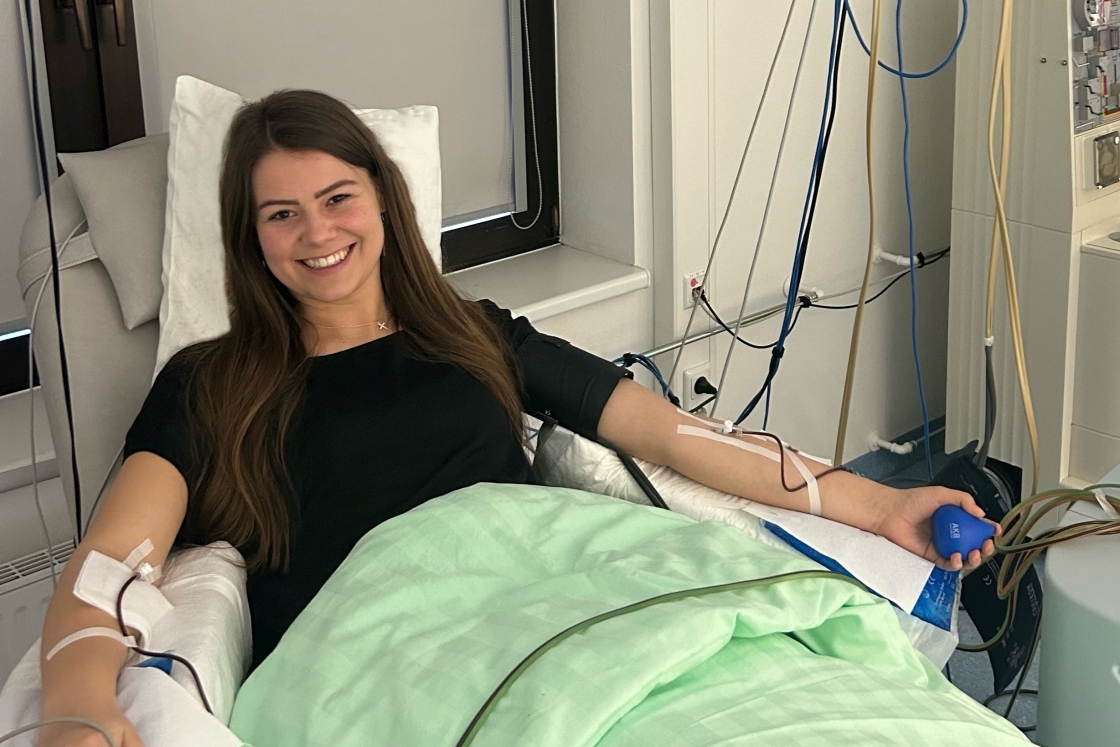 Foto: Victoria bei ihrer lebensrettenden Stammzellspende – Download Foto