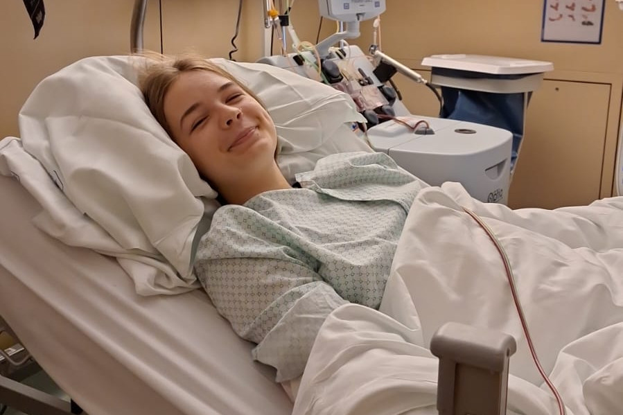 Foto: Clara (23) bei ihrer Stammzellspende – Download Foto