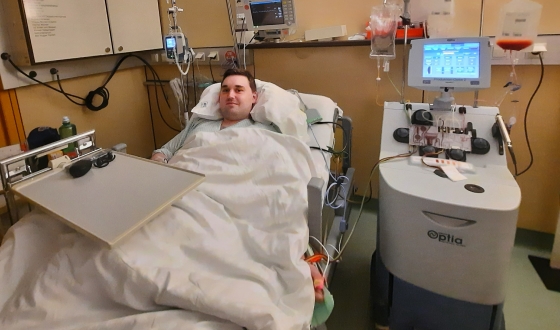Bild: Unser Spender Julian bei der Stammzellspende – Download Foto