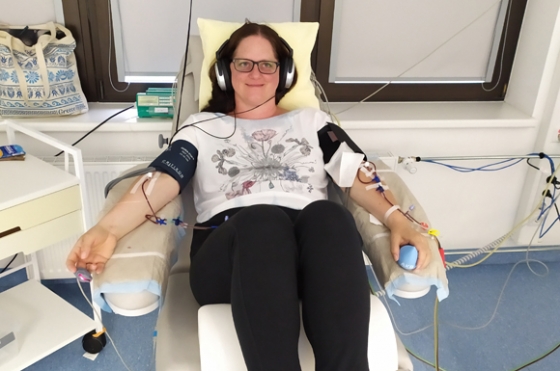 Bild: Unsere 130. Lebensretterin Christine bei der Stammzellspende – Download Foto