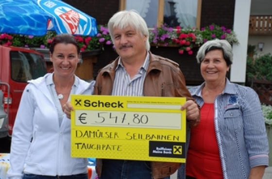 Trotz der widrigen Umstände stürzten sich zahlreiche Teilnehmer in den vorgeheizten Pool und tauchten für kurze Zeit (bzw. so lange wie jeder konnte) ab. So wurden an diesem Nachmittag über 900 Sekunden getaucht. Für jede Sekunde unter Wasser wurden 20 Cent verrechnet. Dieser Betrag wurde dann von „Götti“, Wolfgang Beck von den Damülser Seilbahnen, mit dem Faktor 3 multipliziert, was dann den schönen Betrag von € 547,80 ergab.